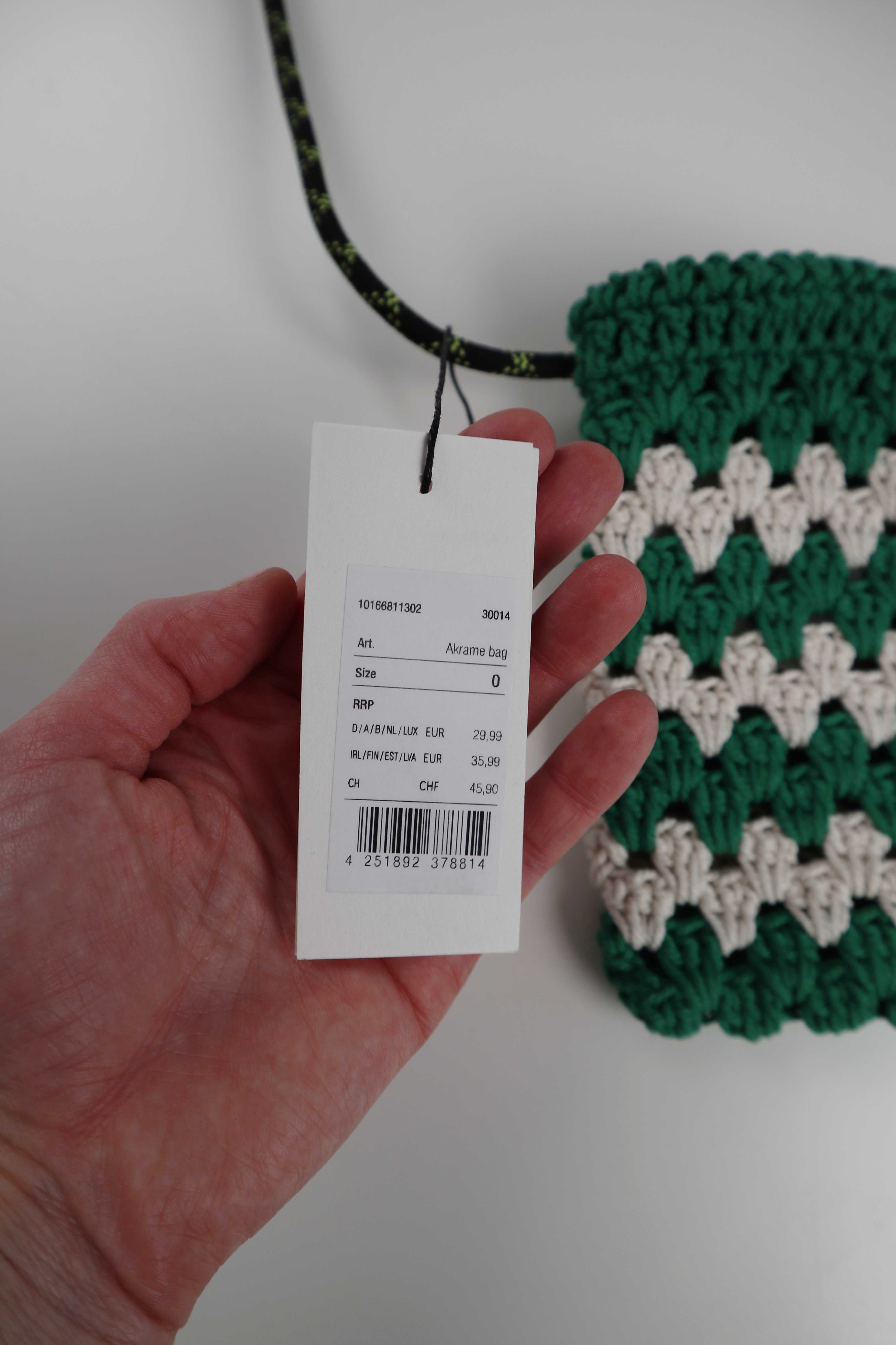 Neue kleine Häkeltasche von Opus. Ist in grün weiß, mit Etikett, ein Handy passt rein. Plus Versand