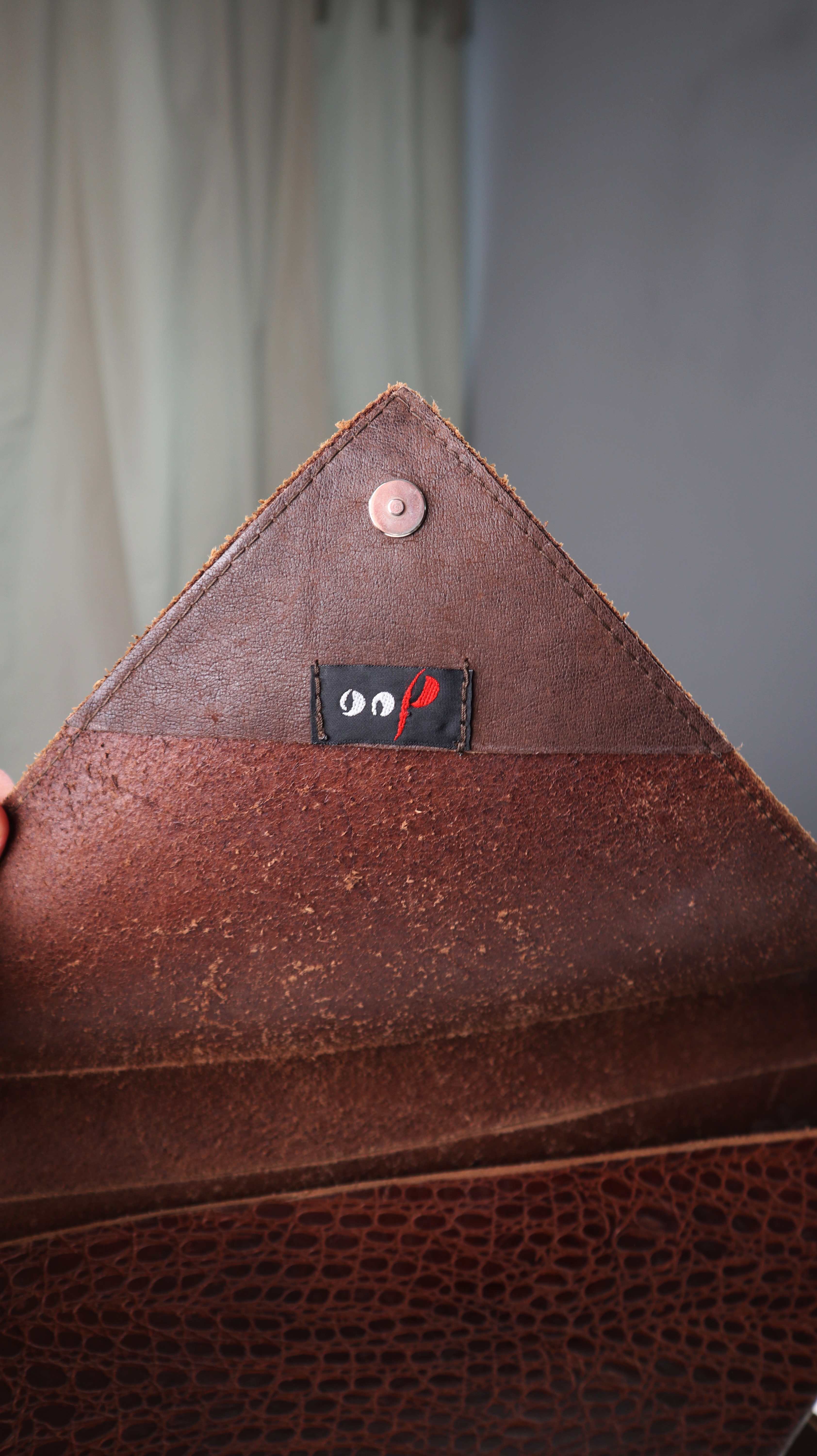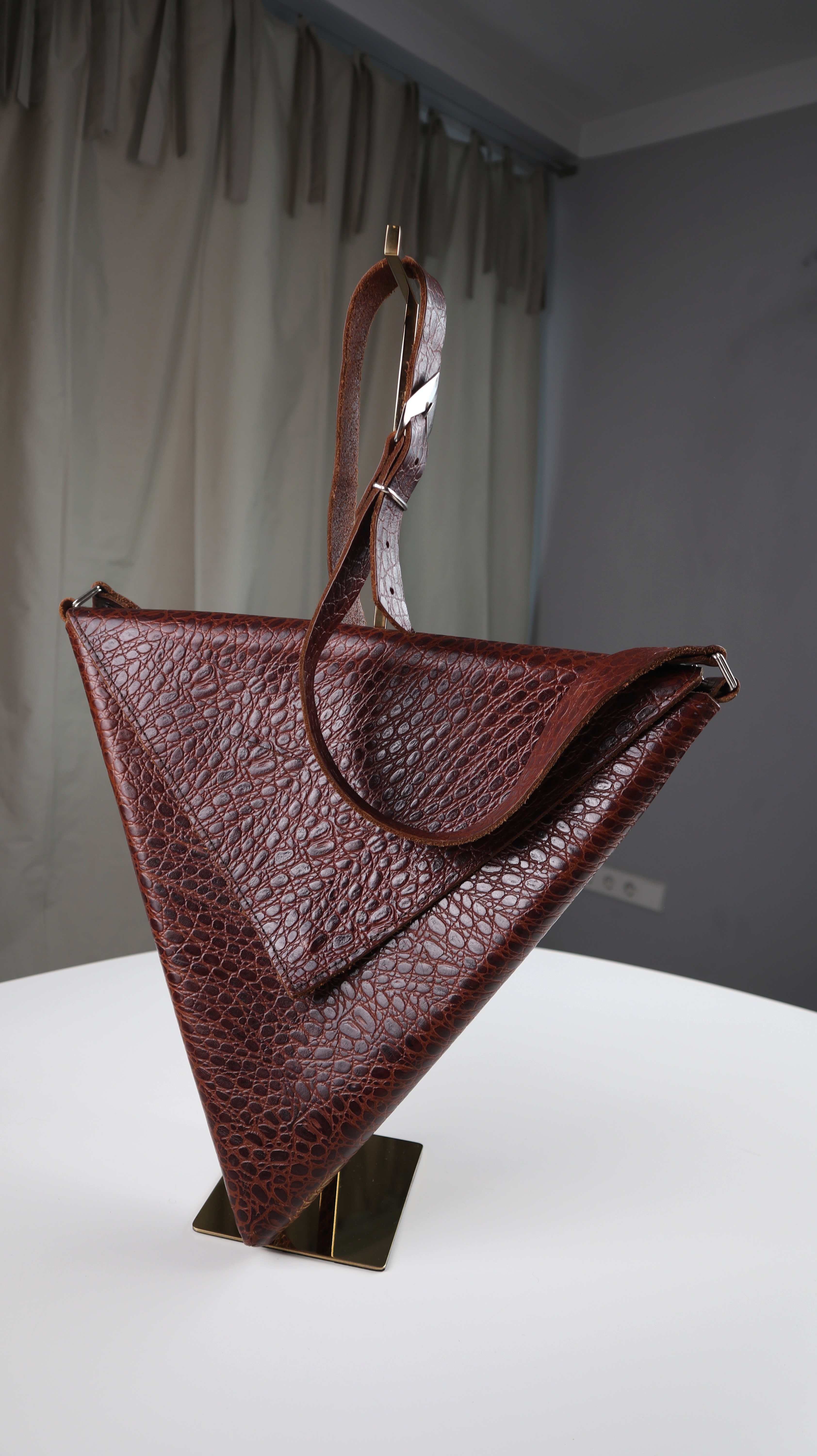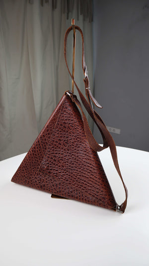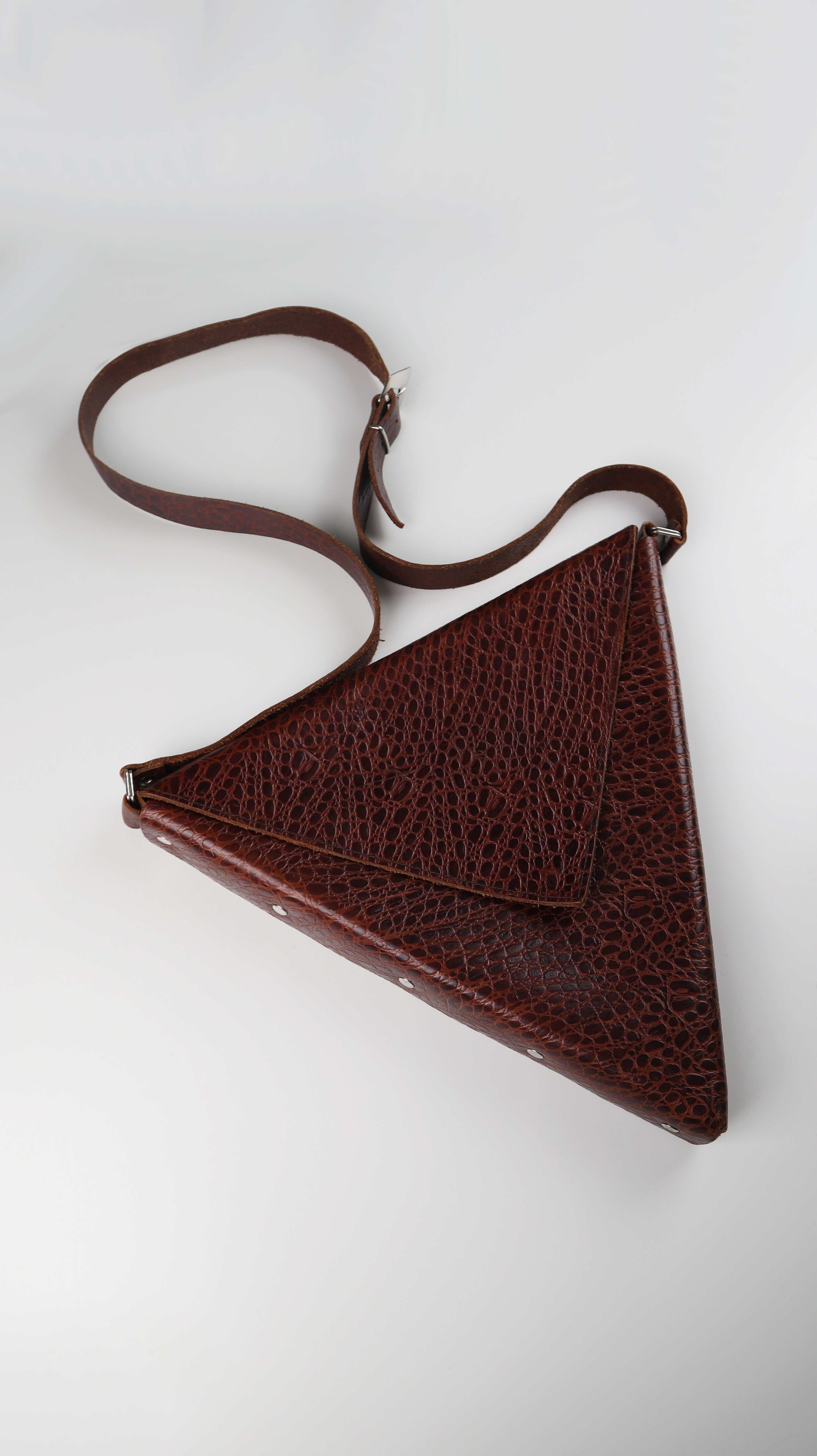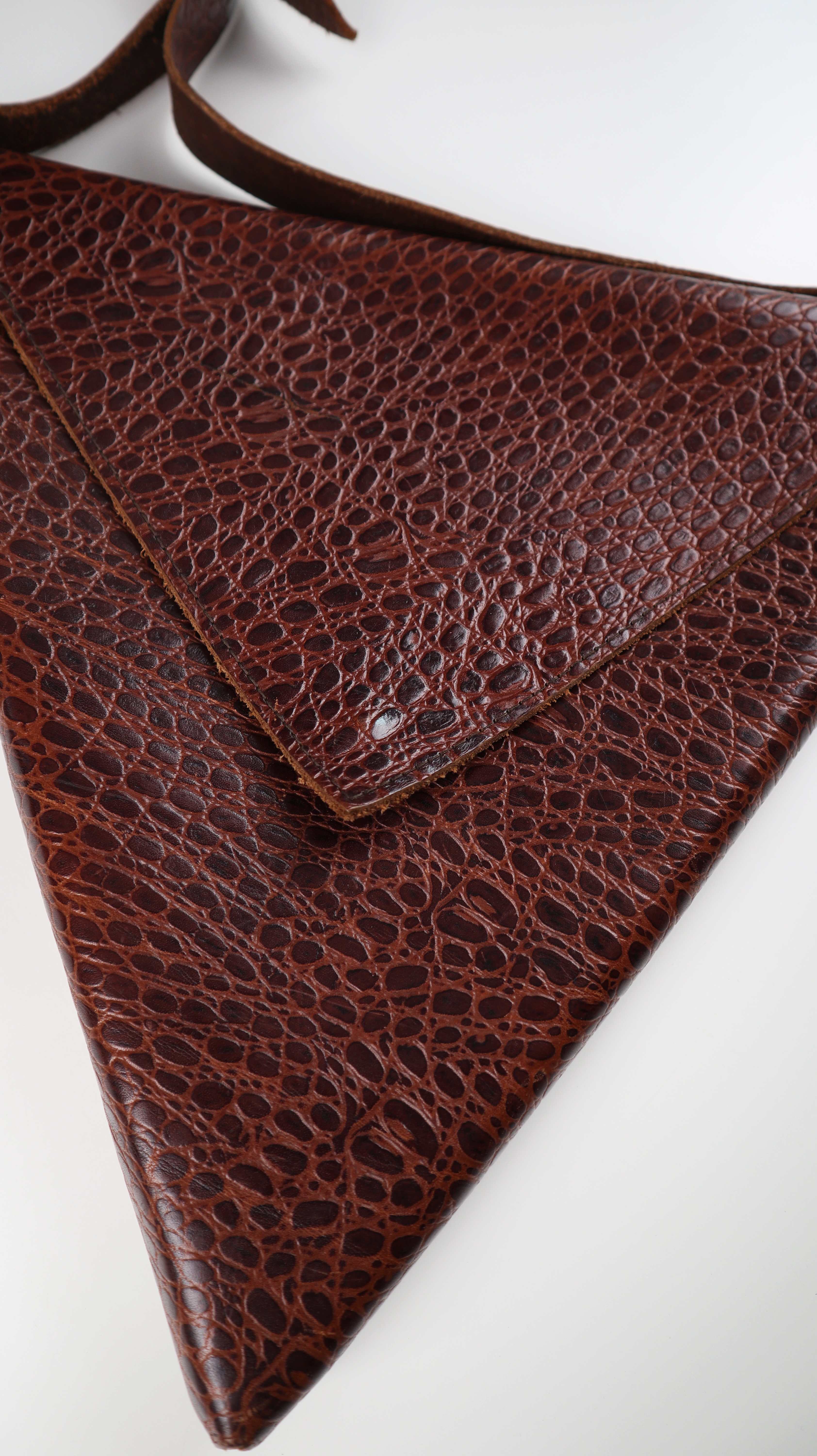 Origami Ledertasche Dreieck Braun Tasche Umhängetasche geometrisch