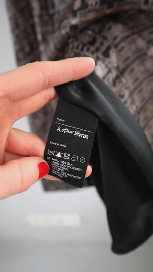 &other stories Kleid 34 XS braun schwarz Cocktailkleid Midi Seide Seidenkleid
