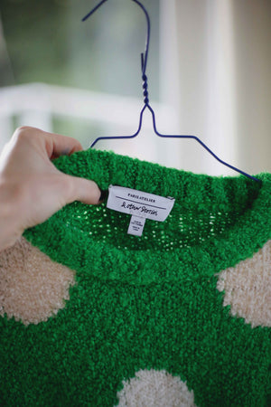 &other stories Pullover Sweater Grün Wollpullover gestrickt 38 M Paris Atelier gepunkt