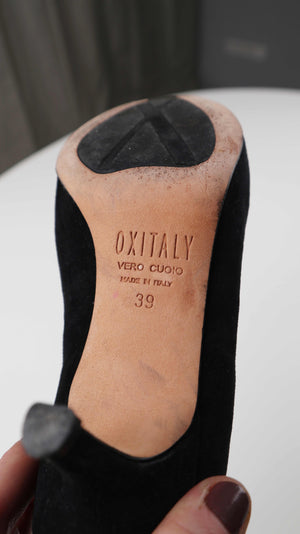 Schwarze Heels von Oxitaly in Größe 39. Sie haben einen kleinen Absatz. Plus Versand