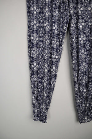 Paisley Jogger Jogginghose Blau Weiß Sporthose Yogahose 38 M Dunkelblau