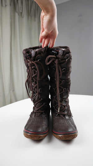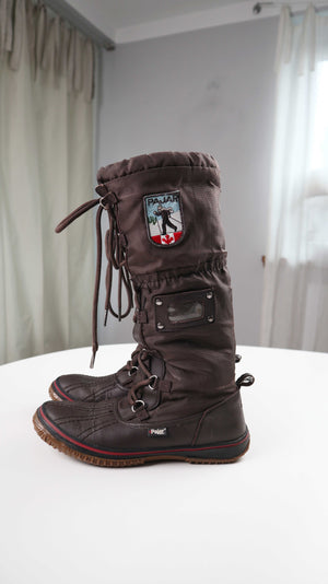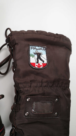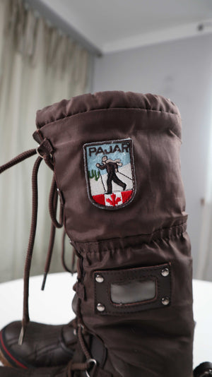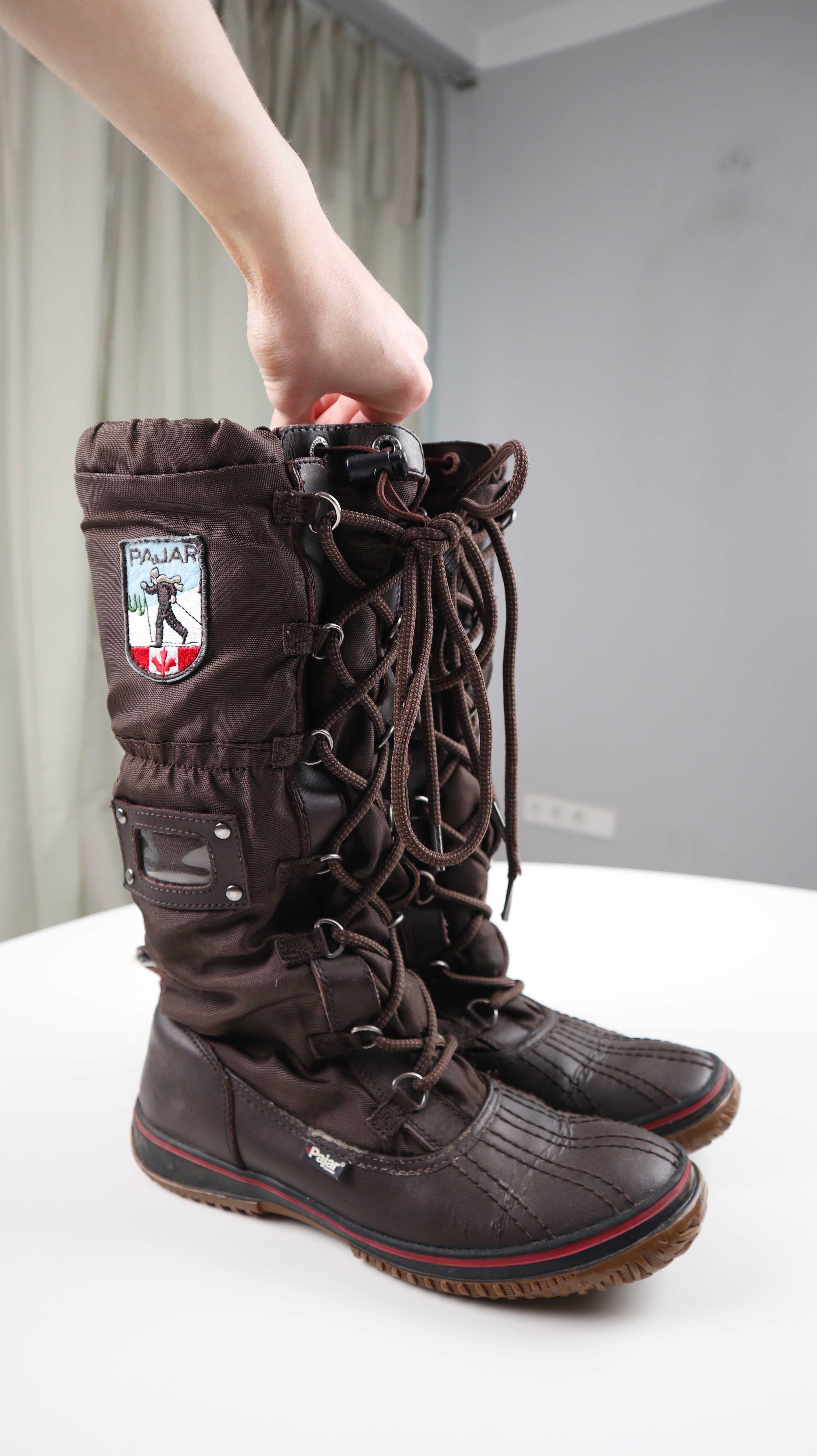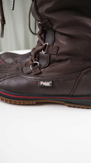 Braune lange Schneestiefel von Pajar. Sie sind in 39, gefüttert und ideal für Spaziergänge in Wald oder mit einem Hund. Plus Versand
