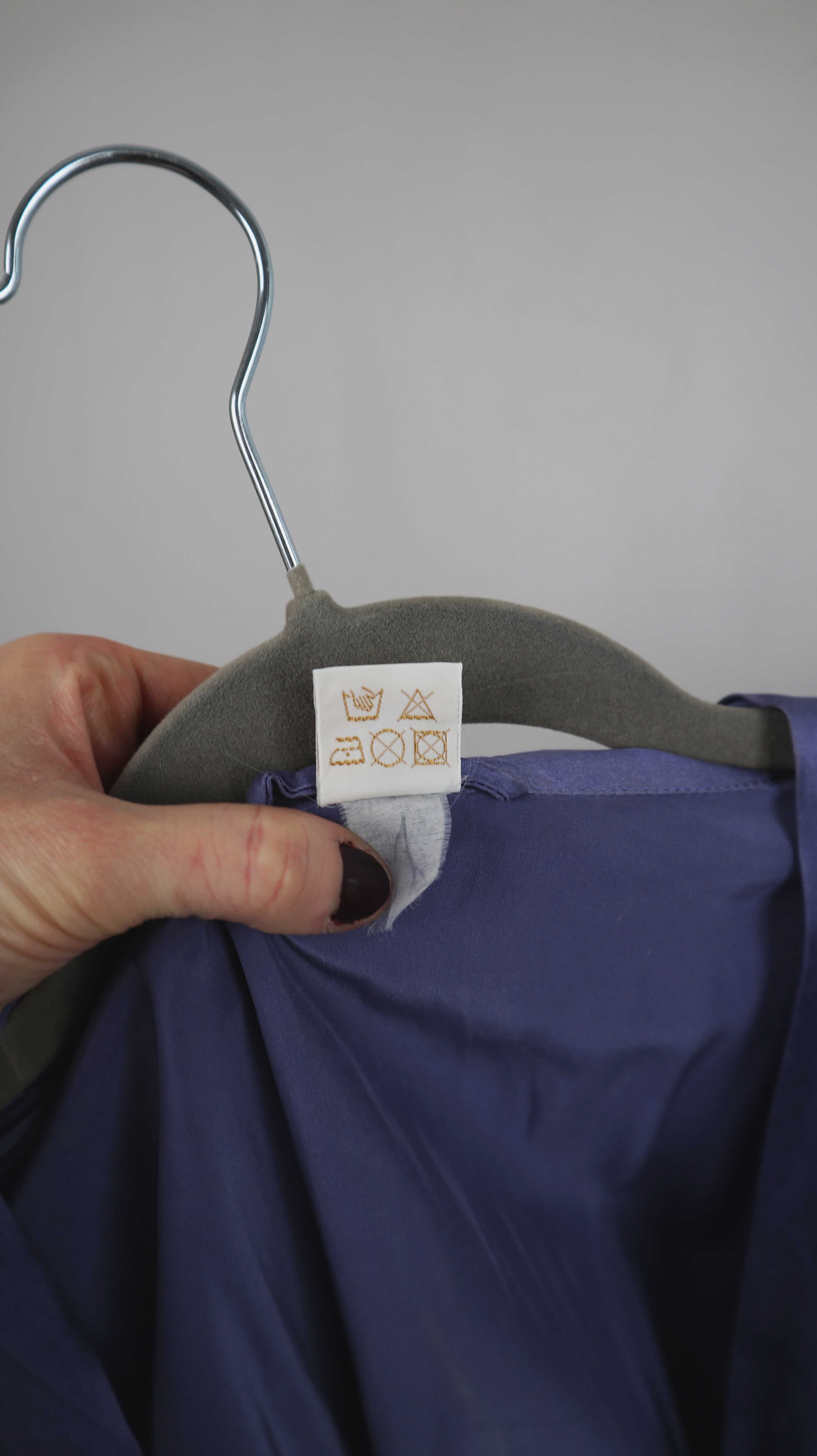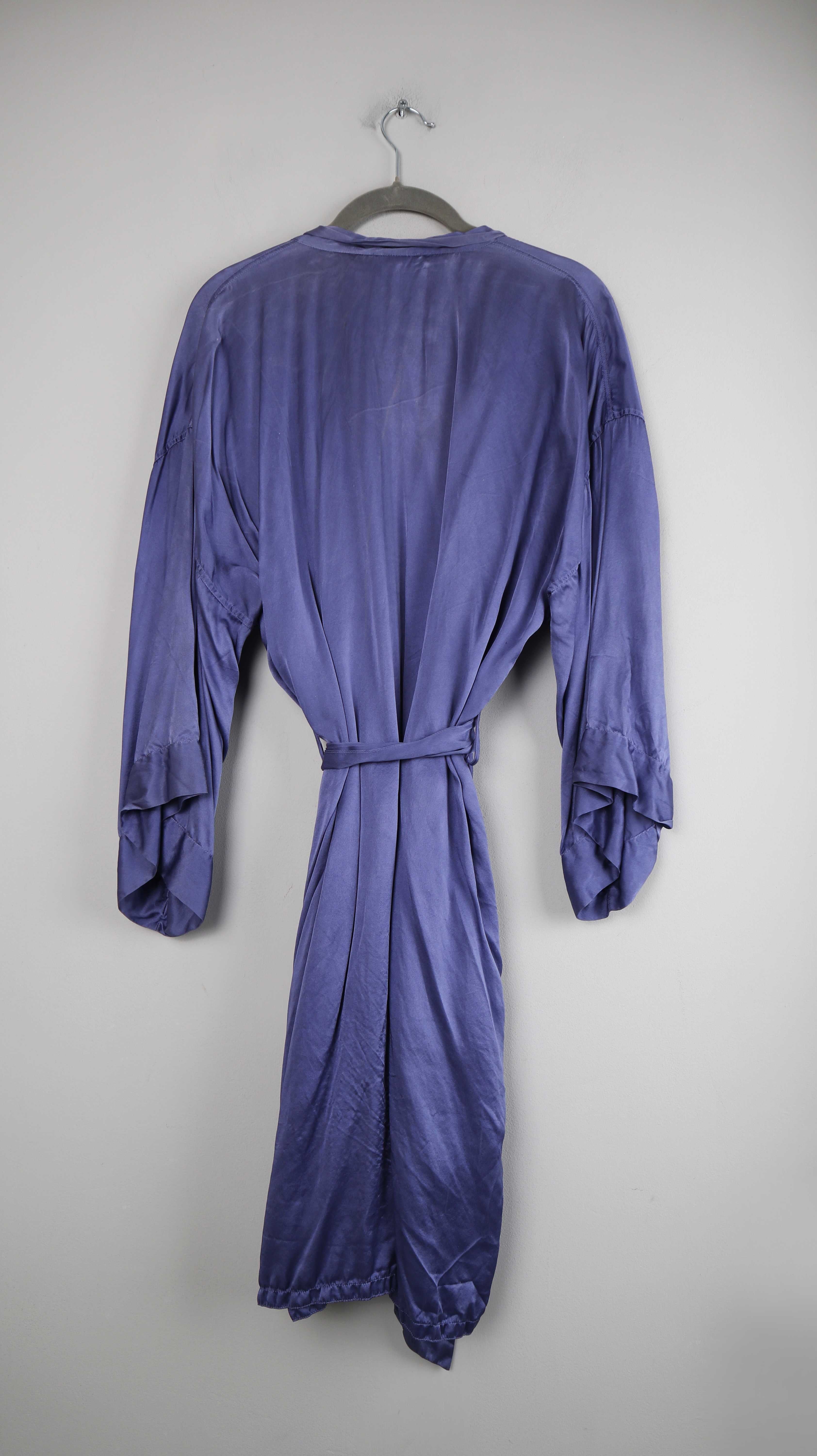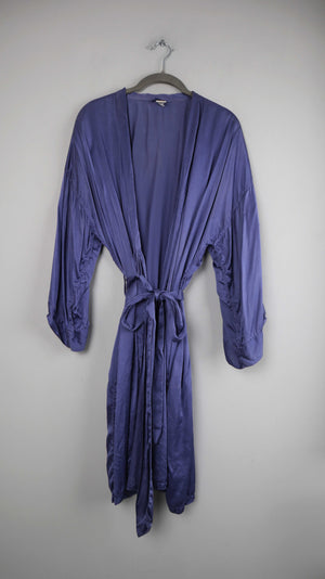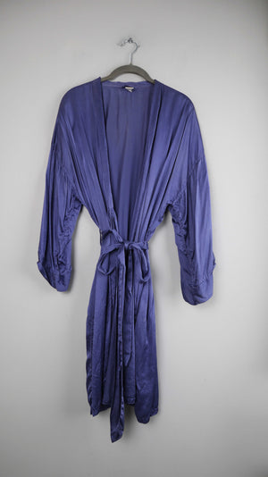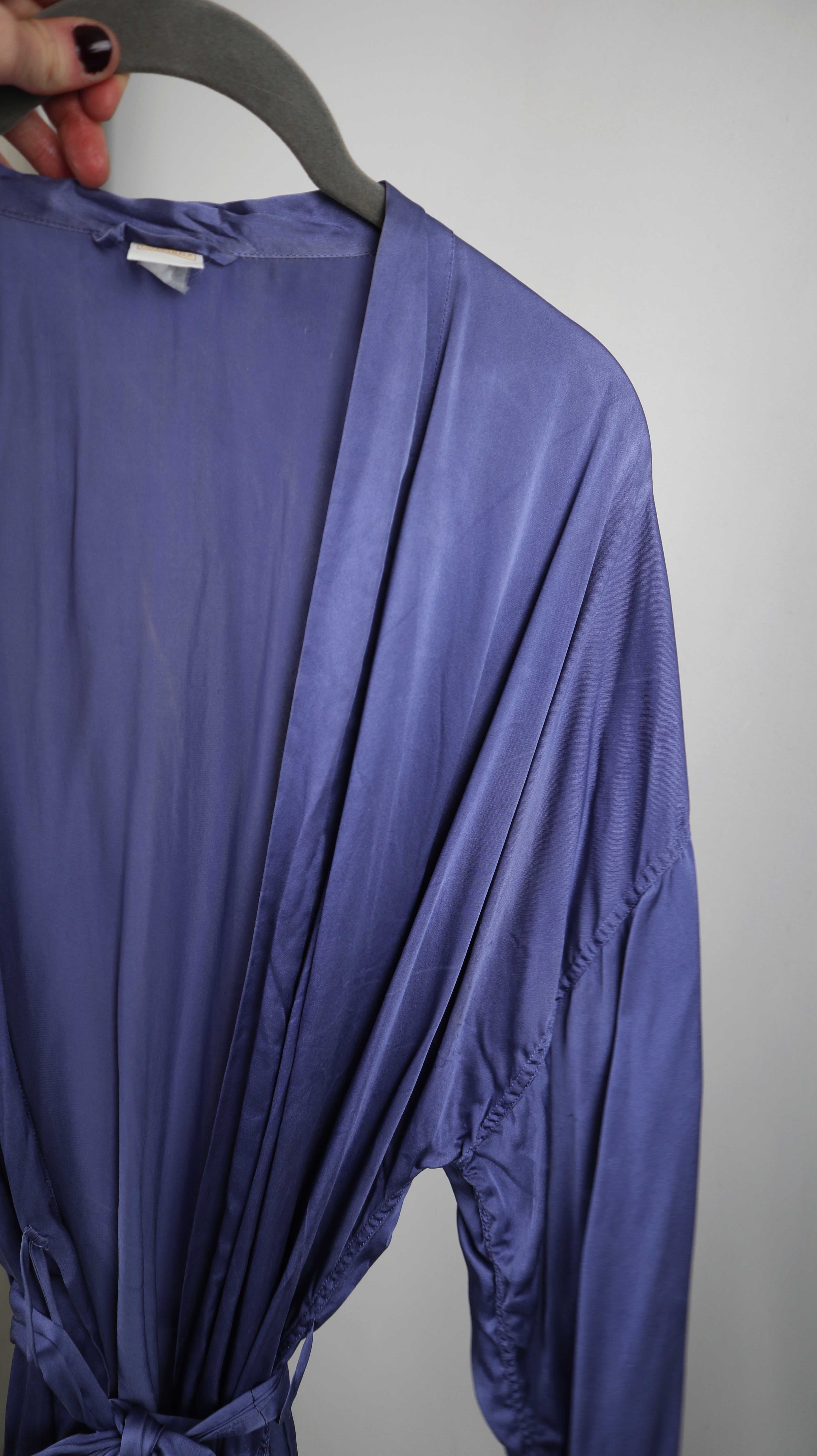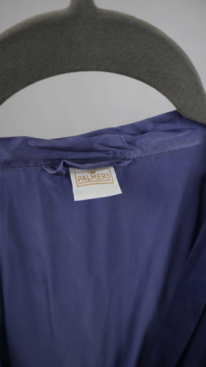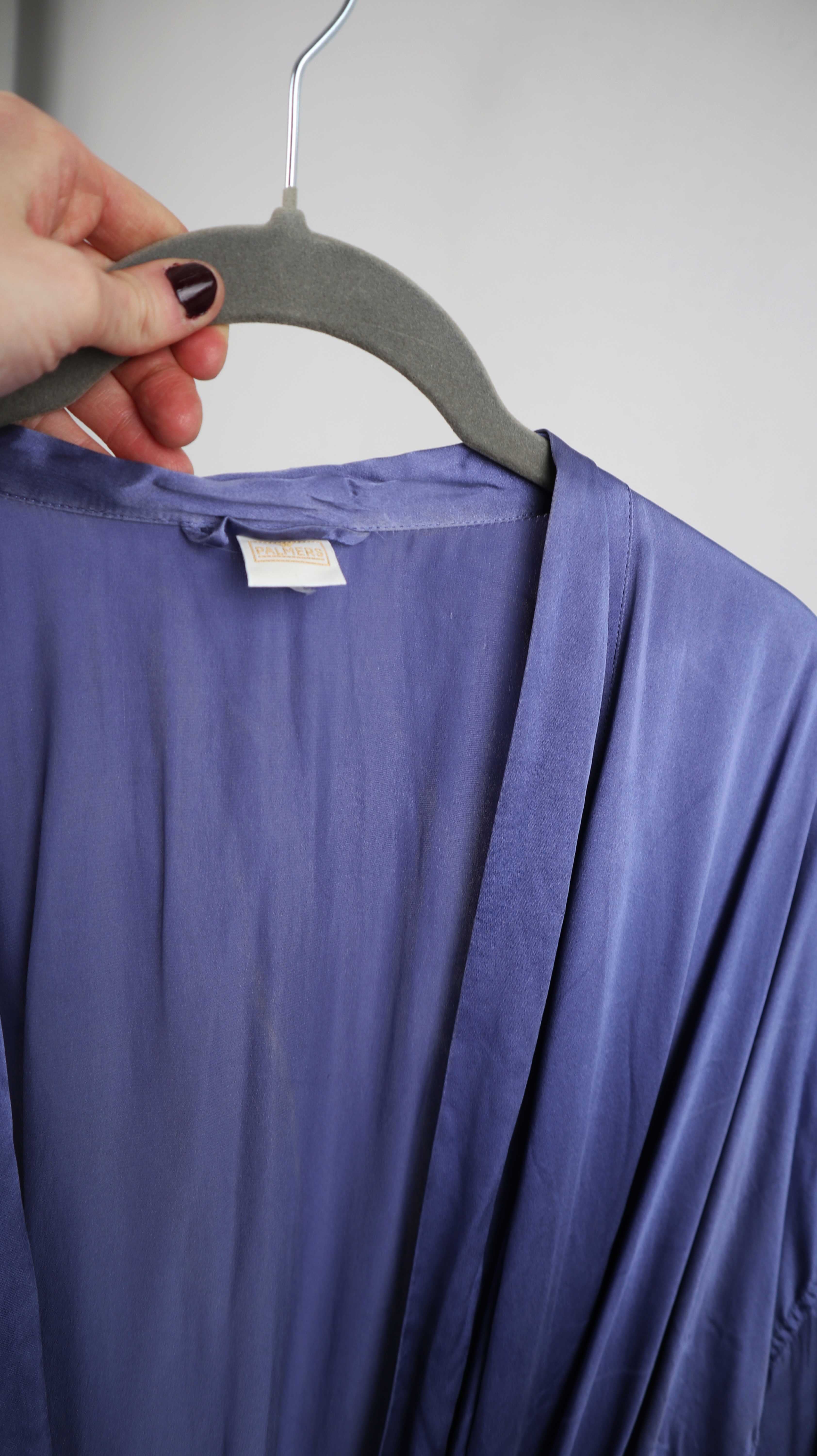 Blauer Bademantel aus Seide von Palmers. Er ist in einer Einheitsgröße und die Ärmel sind 3/4 lang. 44 cm Achselweite und 60 cm Länge. Plus Versand
