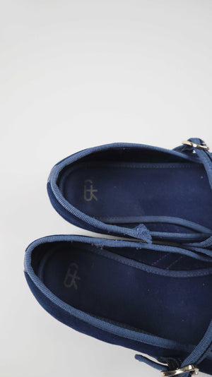 Parfois Slipper Dunkelblau Ballerinas 39 Samt Velvet Loafer Blau