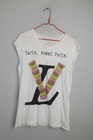 Paris sweet Paris Shirt bedruckt Print 40 L weiß weiss Oberteil T-Shirt