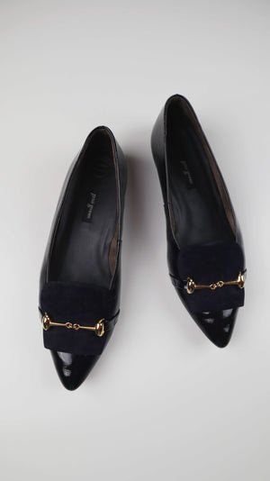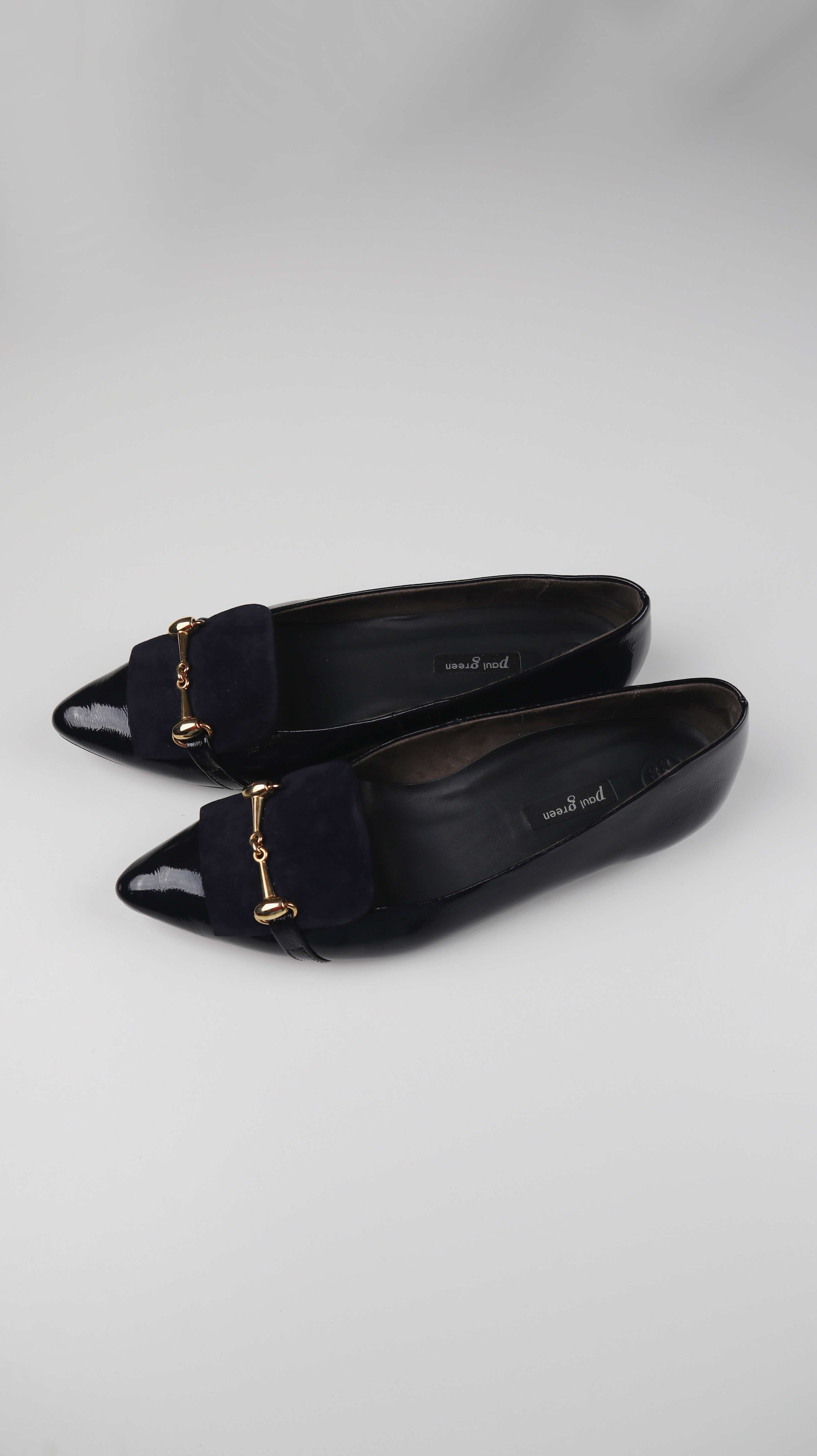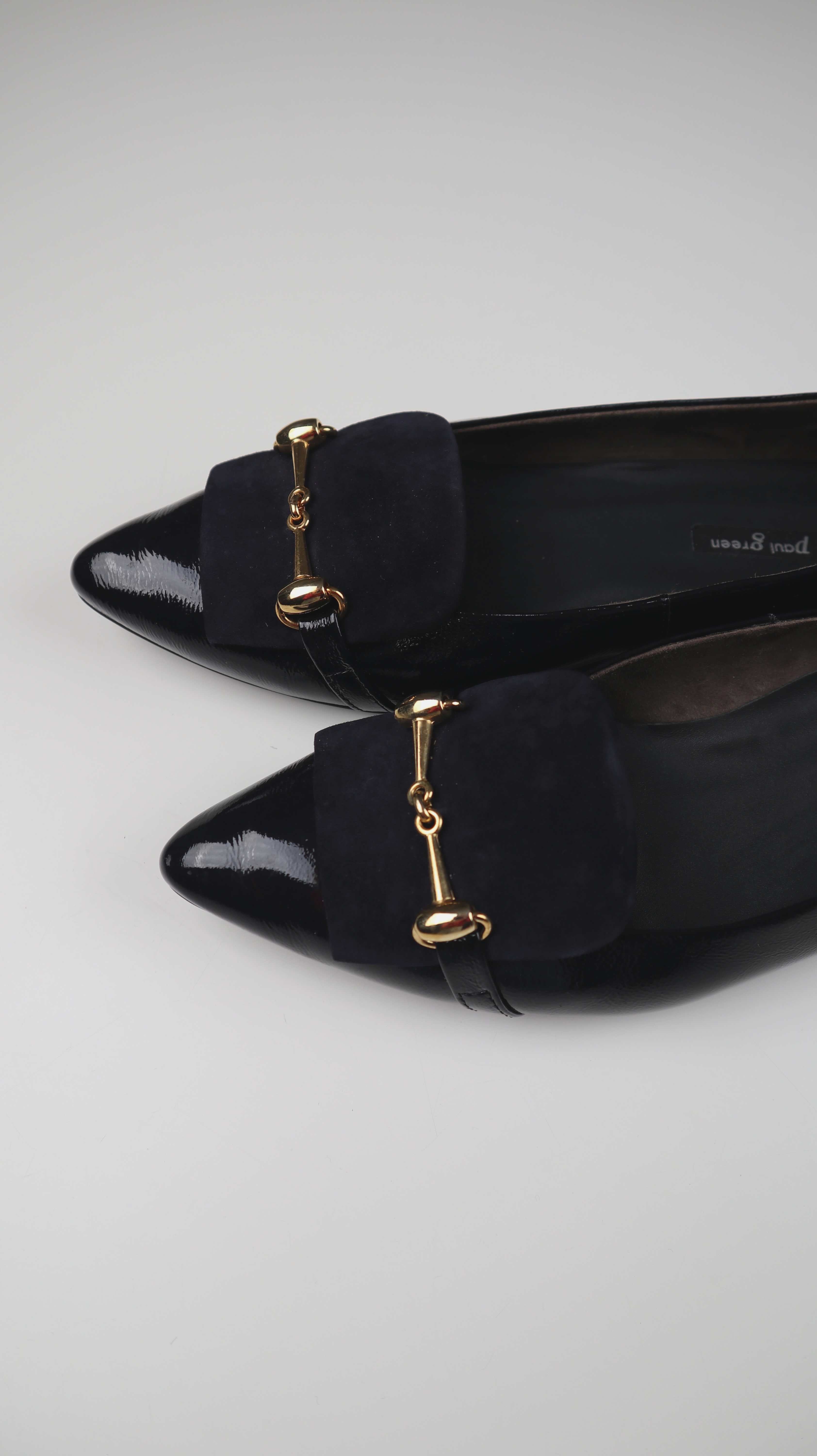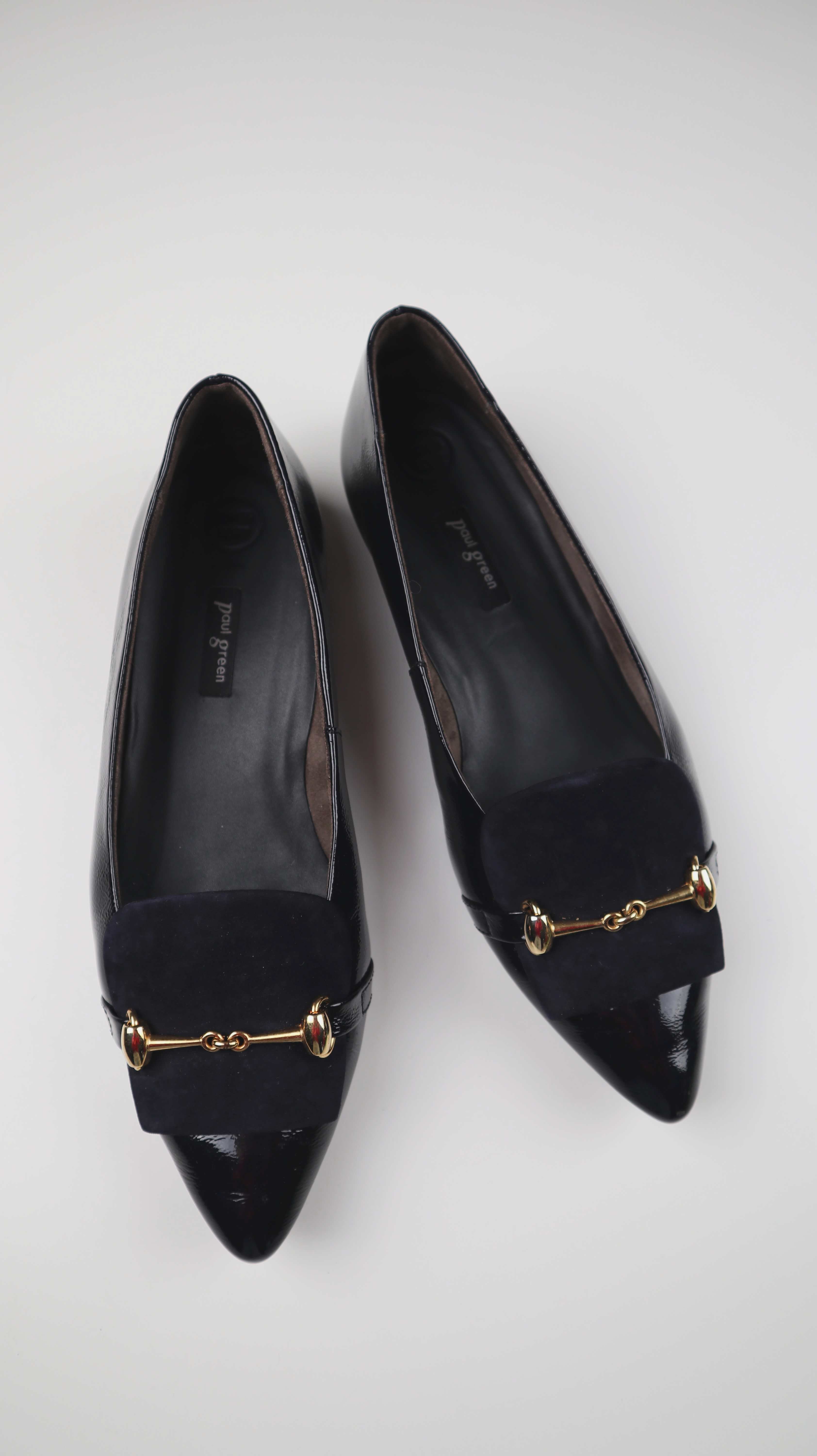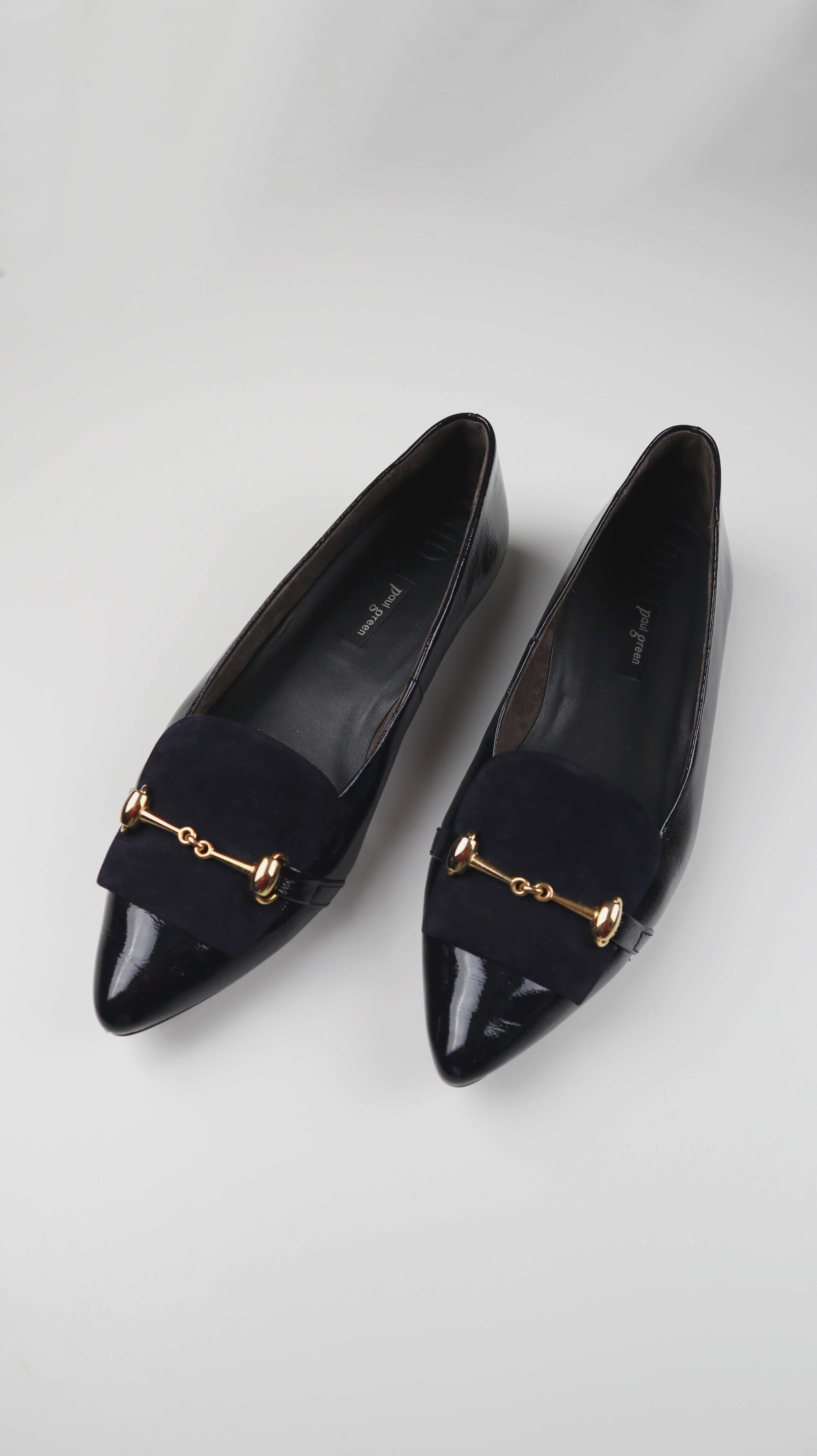 Paul Green Ballerina 39 Lackleder Schwarz Gold Loafer Slipper Ballerinas