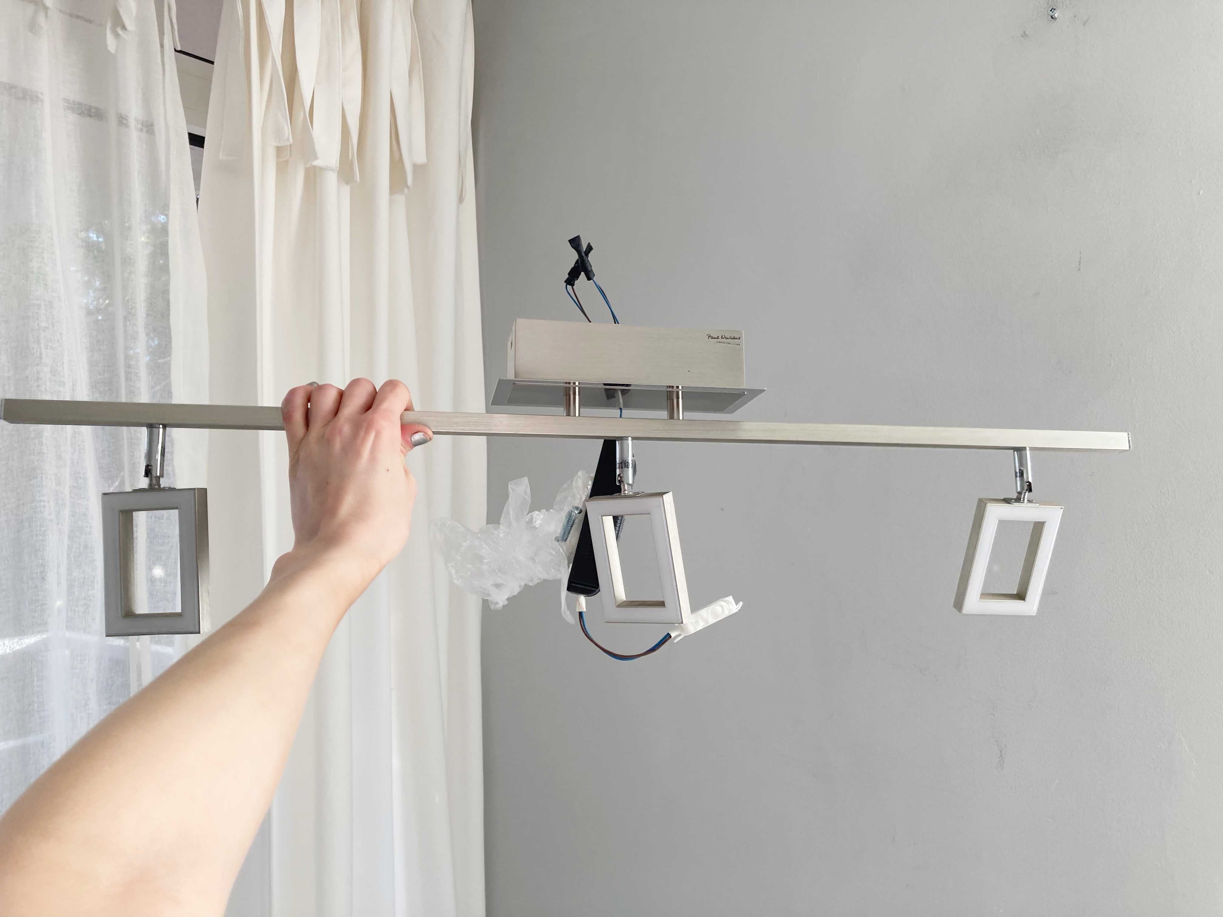 Silberne Deckenlampe mit drei Leuchtelementen von Paul Neuhaus. Schrauben vorhanden, Länge 73 cm. Plus Versand oder Abholung