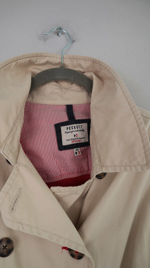 Heller Trenchcoat in Größe 44 von Peckott. 50 cm Achselweite und 83 cm Länge. Plus Versand