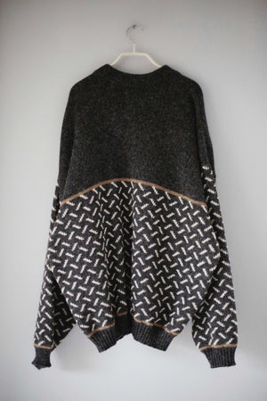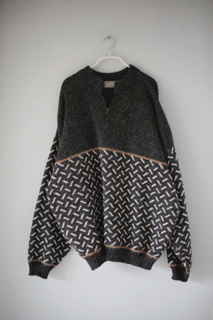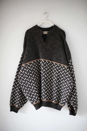 people knitwear WWF Pullover Schurwolle Wolle Grau Muster XL dunkelgrau gestrickt Strickpullover