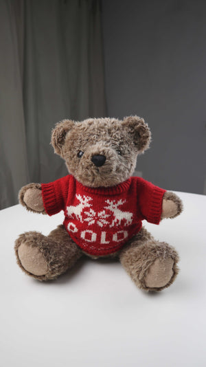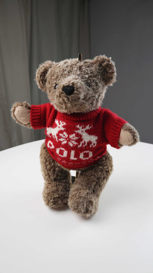 Beweglicher Teddy von Polo Ralph Lauren. Er hat einen kleinen Pullover an, den man auch ausziehen kann. Der Bär ist von 1998. Plus Versand