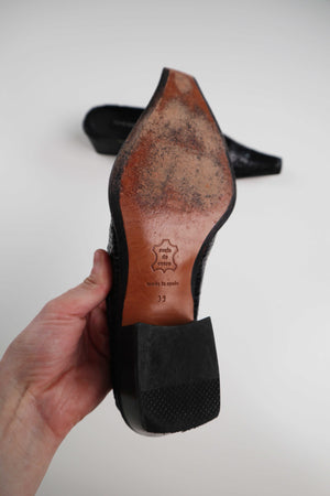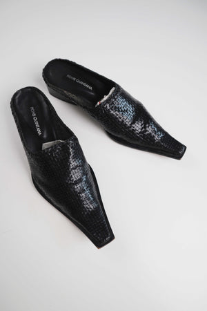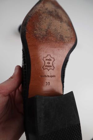 Schwarze Loafer von der spanischen Marke Pons Quintana in 39. Sie sind aus geflochtenem Leder. Plus Versand
