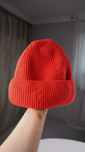 Popeia Mütze Beanie Wolle rot Wollmütze neu Einheitsgröße Schurwolle