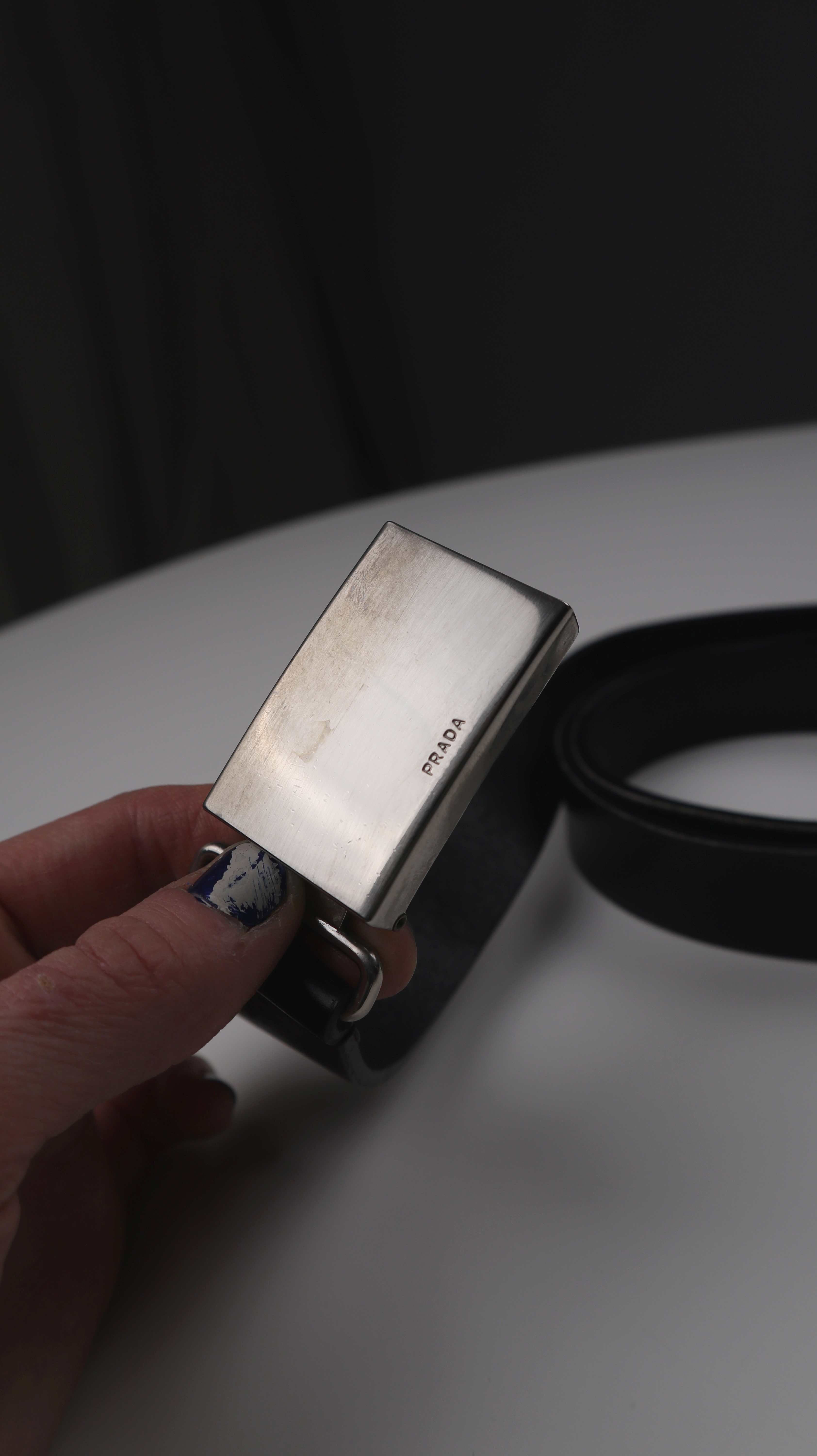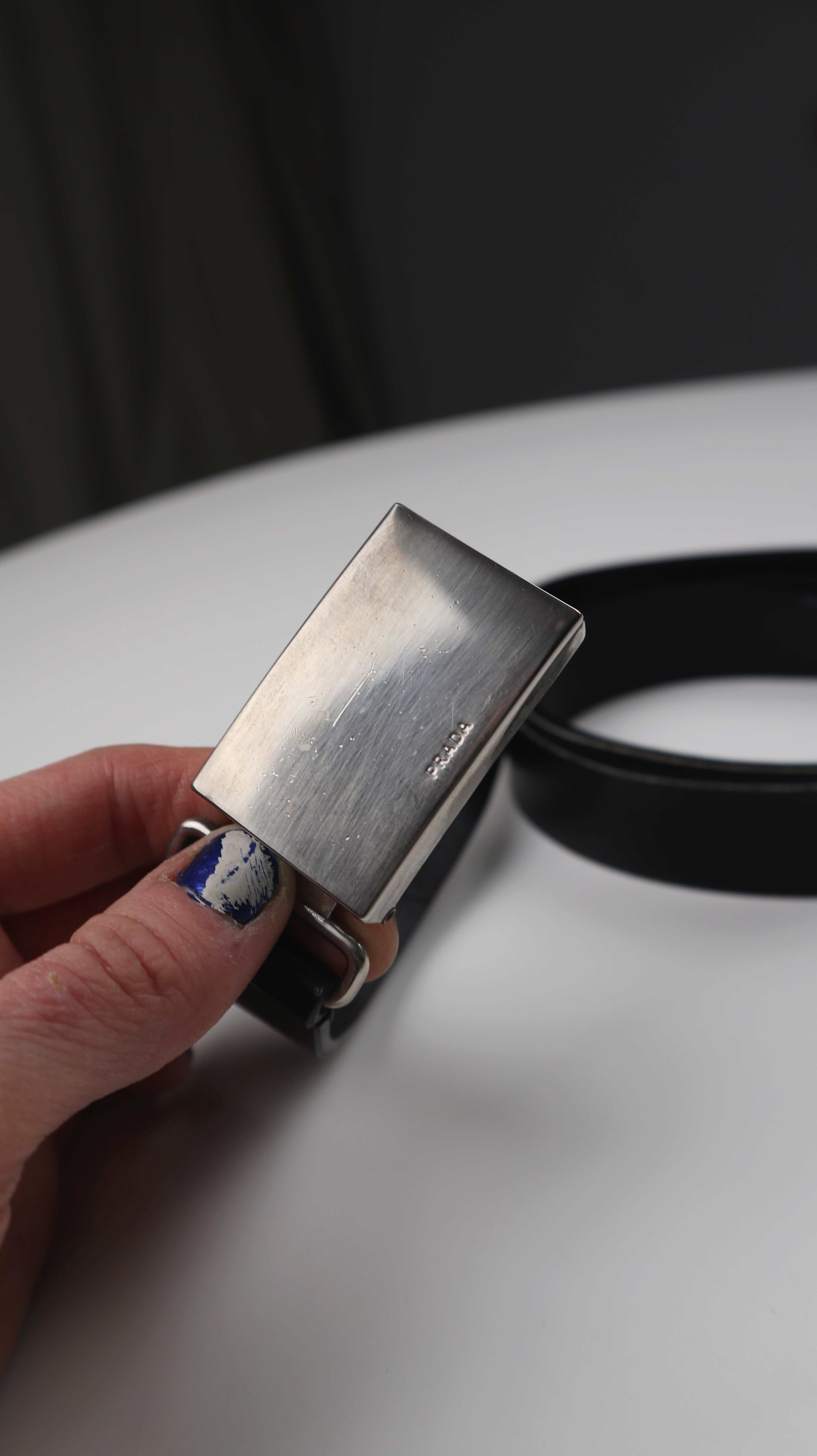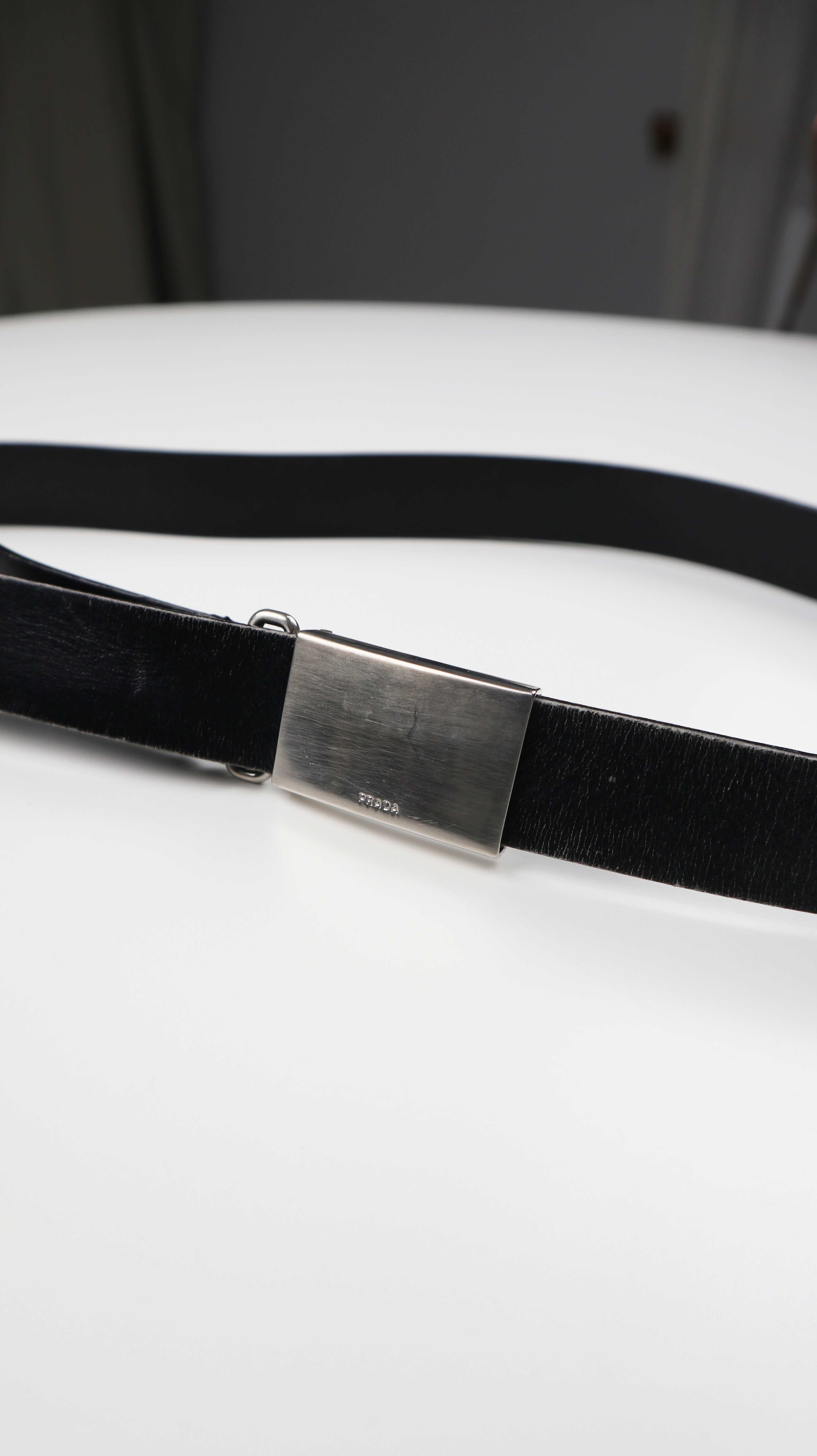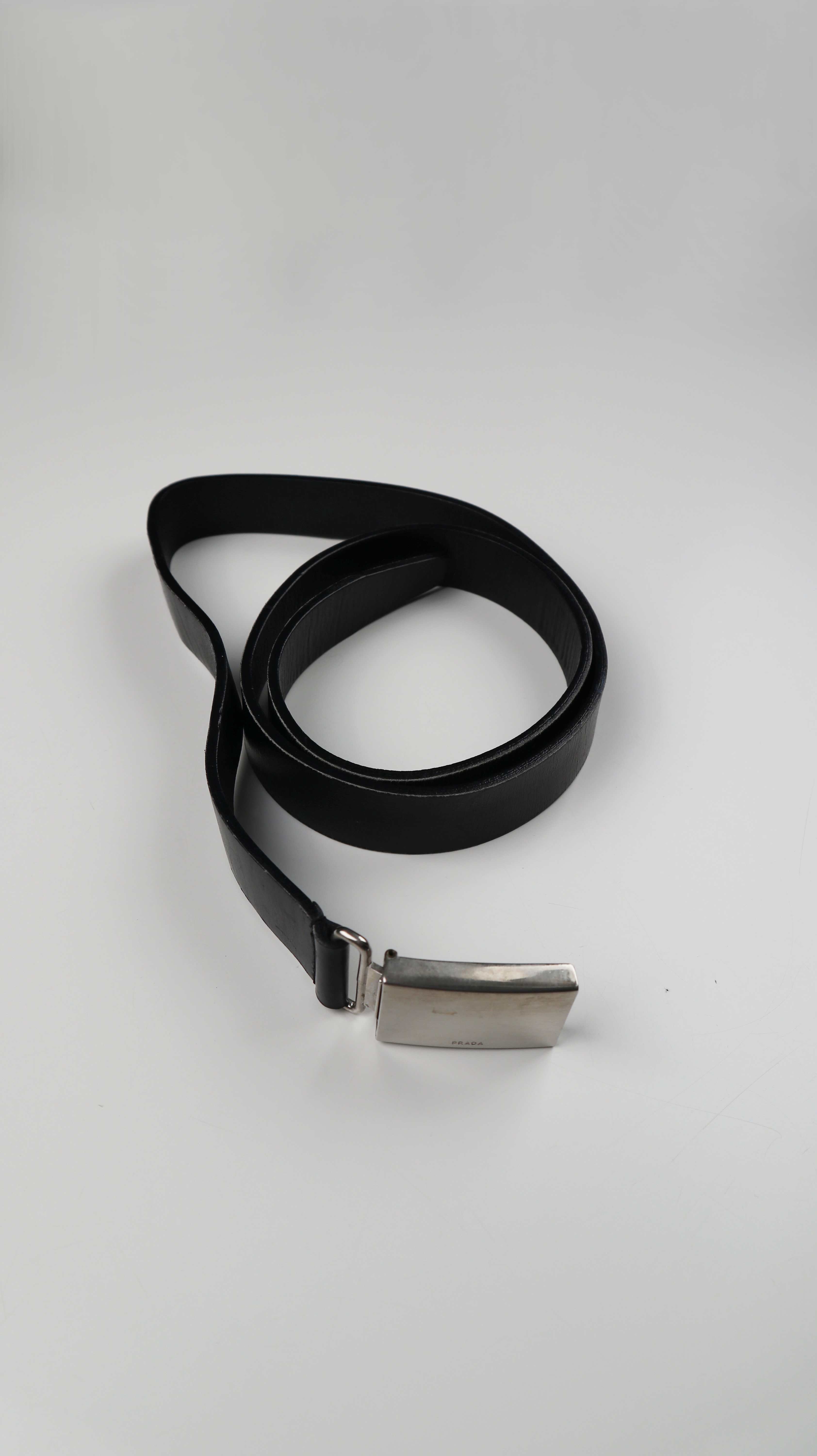 Prada Gürtel schwarz Ledergürtel blank basic silberne Schnalle