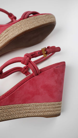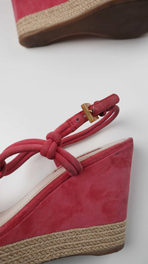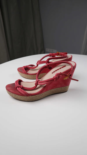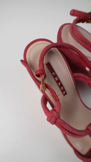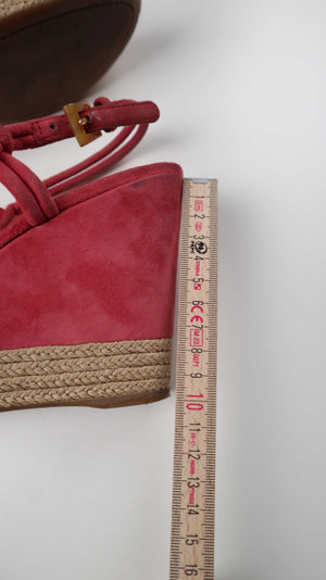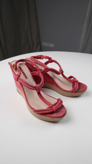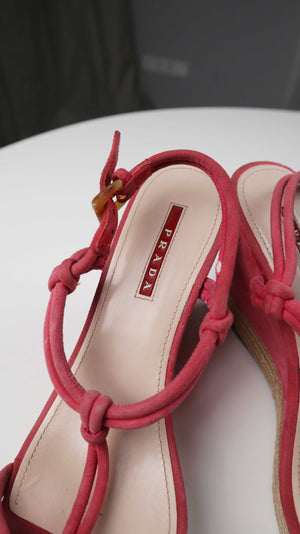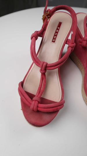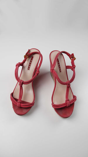 Prada rosa Wildlederheels Wedges Keilabsatz 38,5 T-Strap