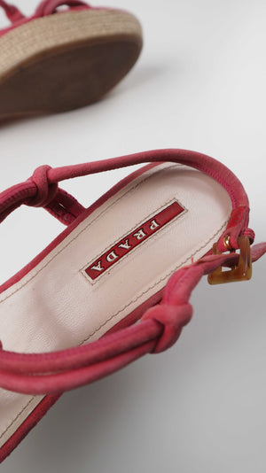 Pinke Keilabsatzheels von Prada in einer 38,5. Sie wurden getragen und weisen normale Gebrauchsspuren auf. Plus Versand