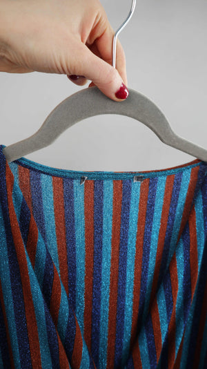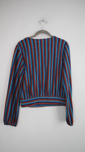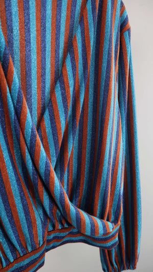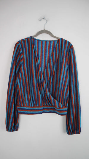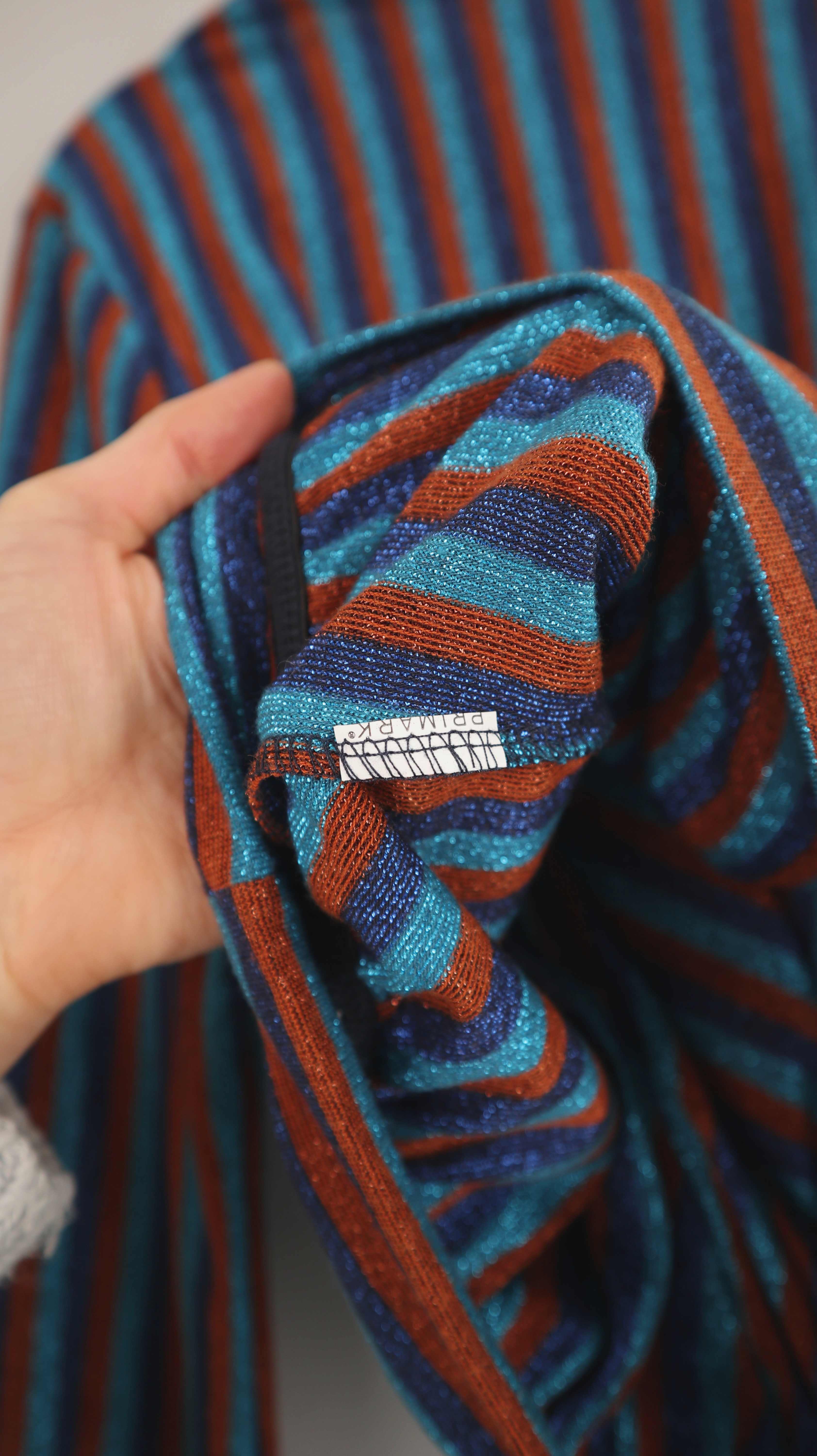 Primark Shirt blau braun Glitzer Oberteil 38 M gestreift Streifenshirt