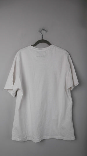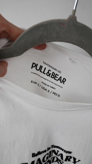 Weißes Shirt von Pull & bear in S mit Print auf der Brust. 51 cm Achselweite und 65 cm Länge. Plus Versand