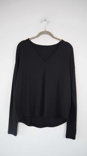 Pullover schwarz basic V-Ausschnitt 36 S 38 M Longsleeve
