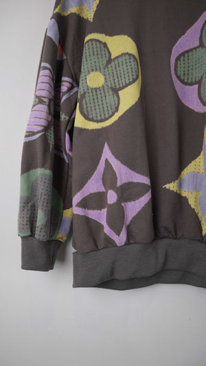 Pullover Sweater Grau Muster 38 M Oberteil bunt