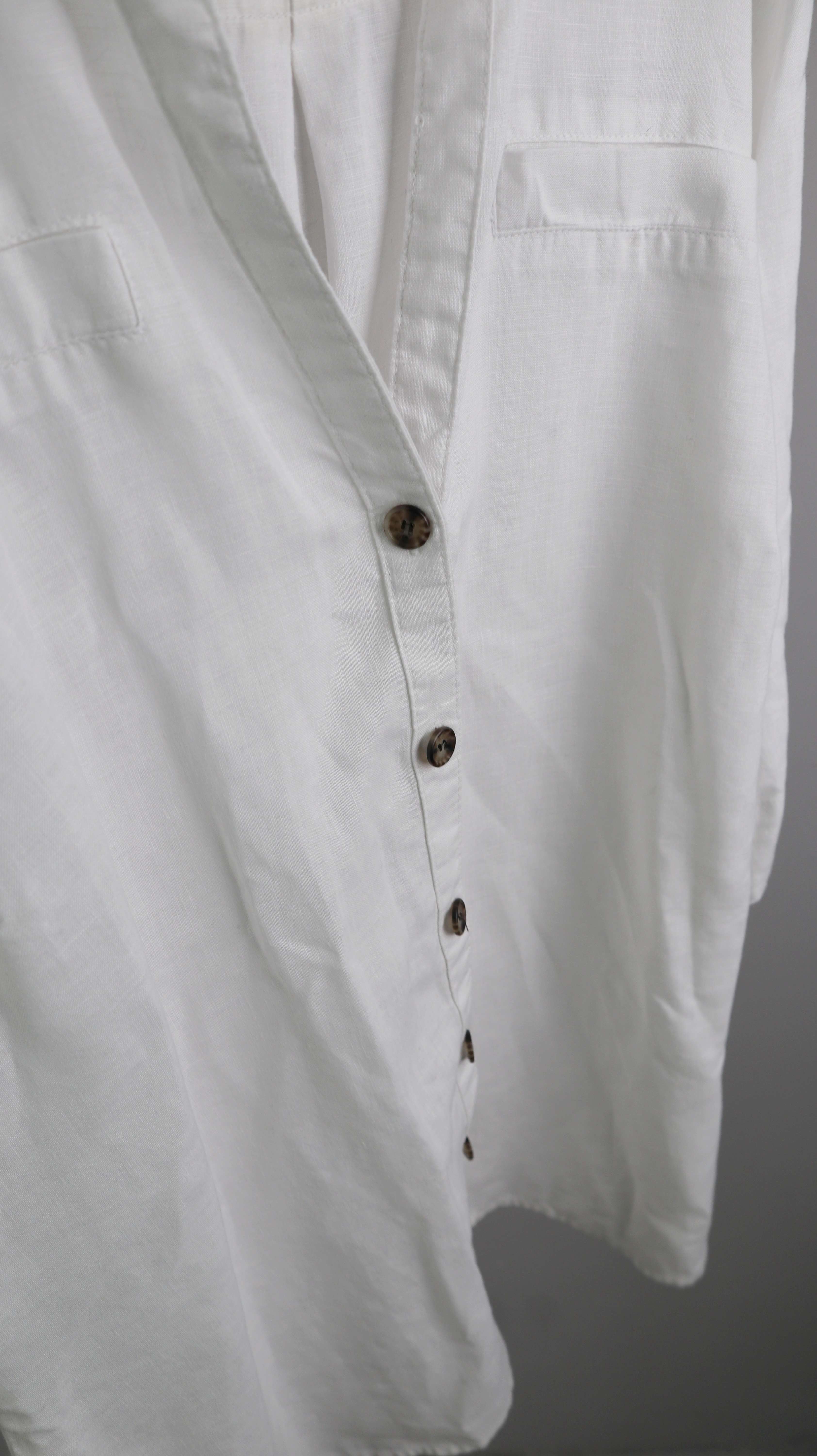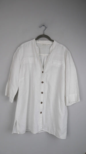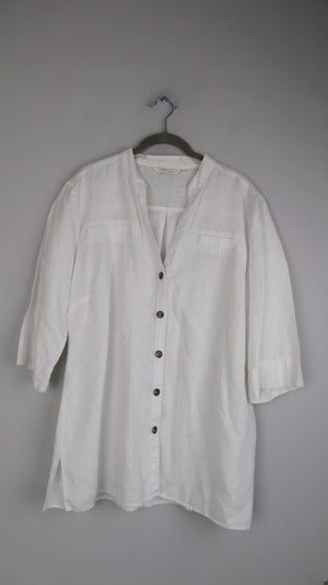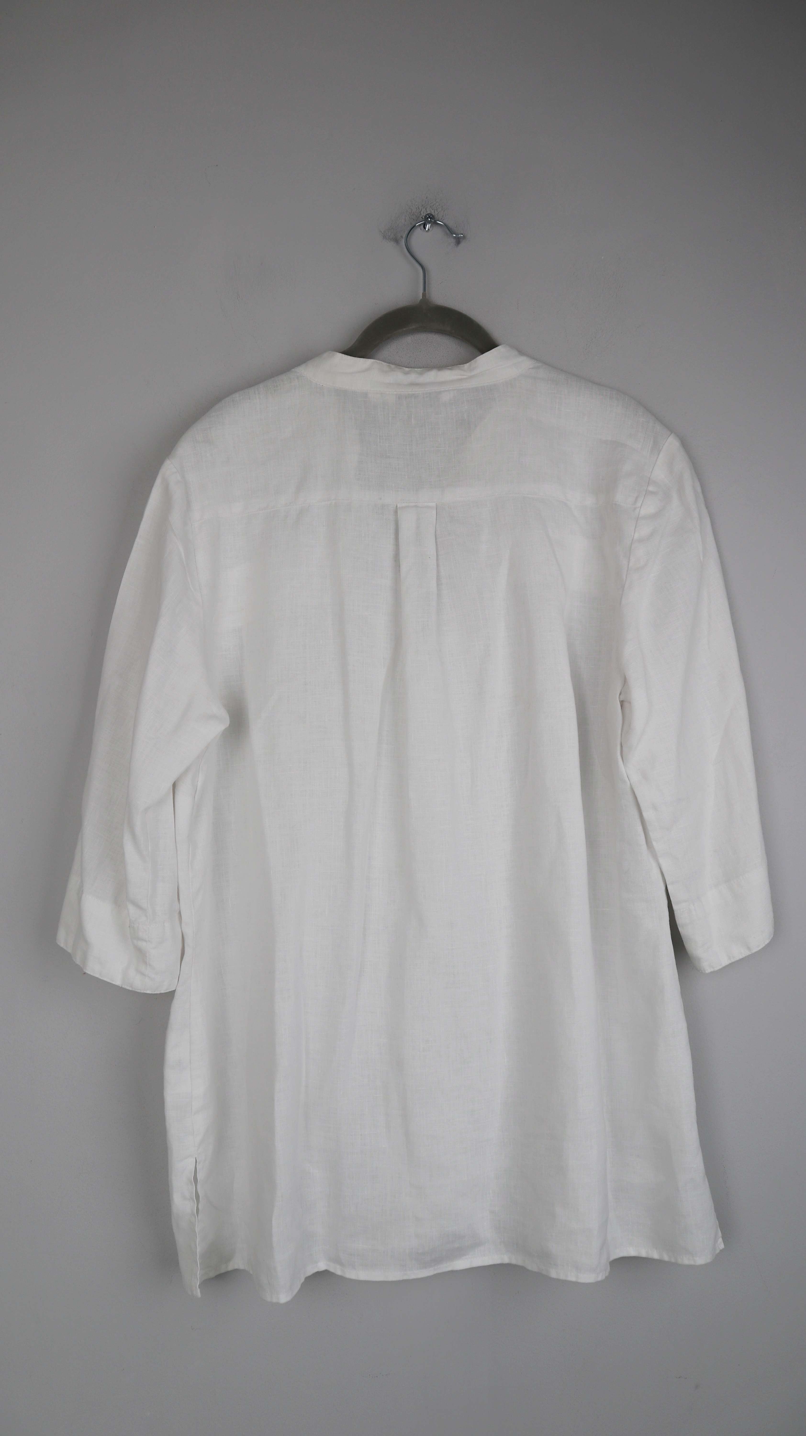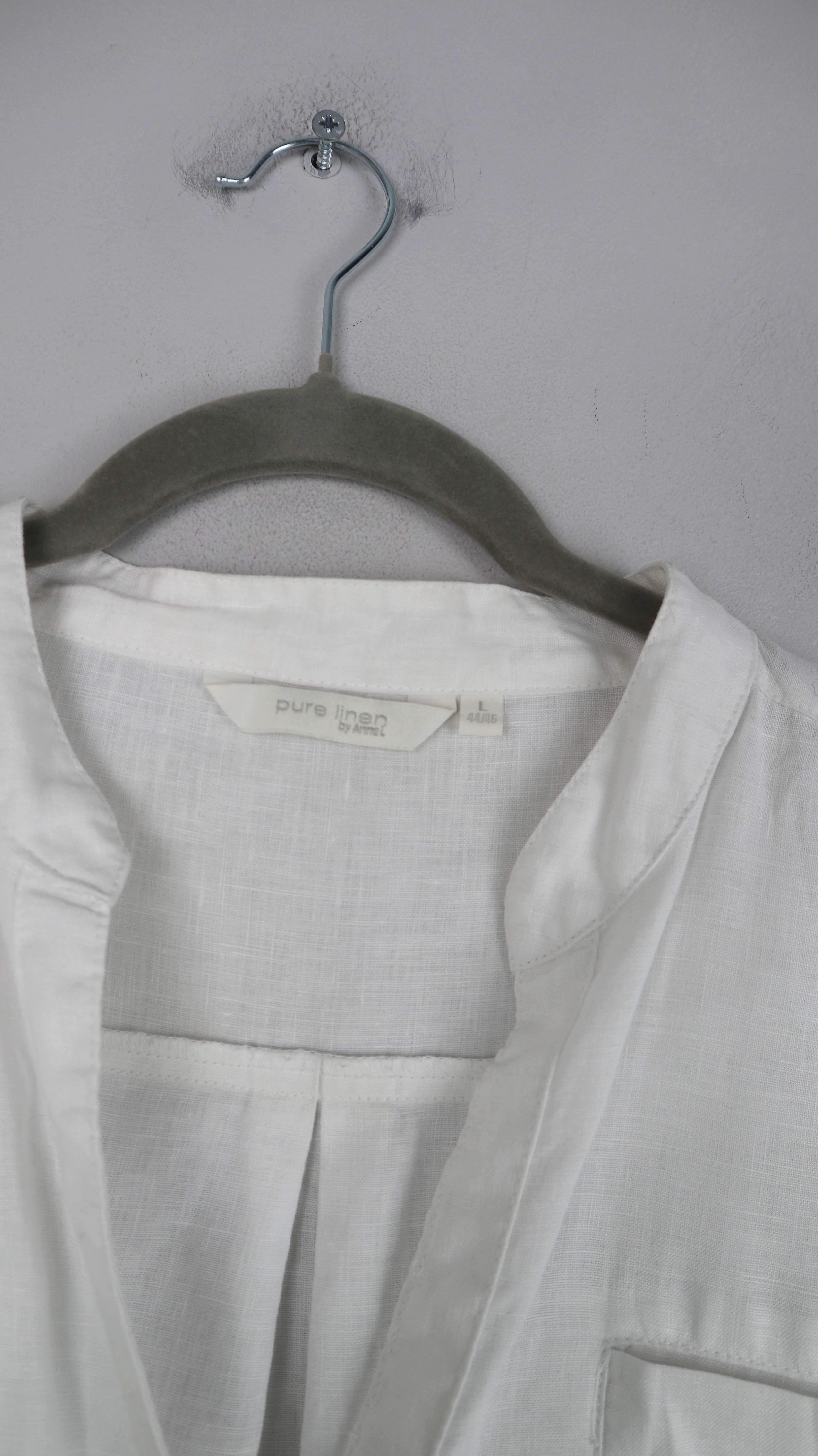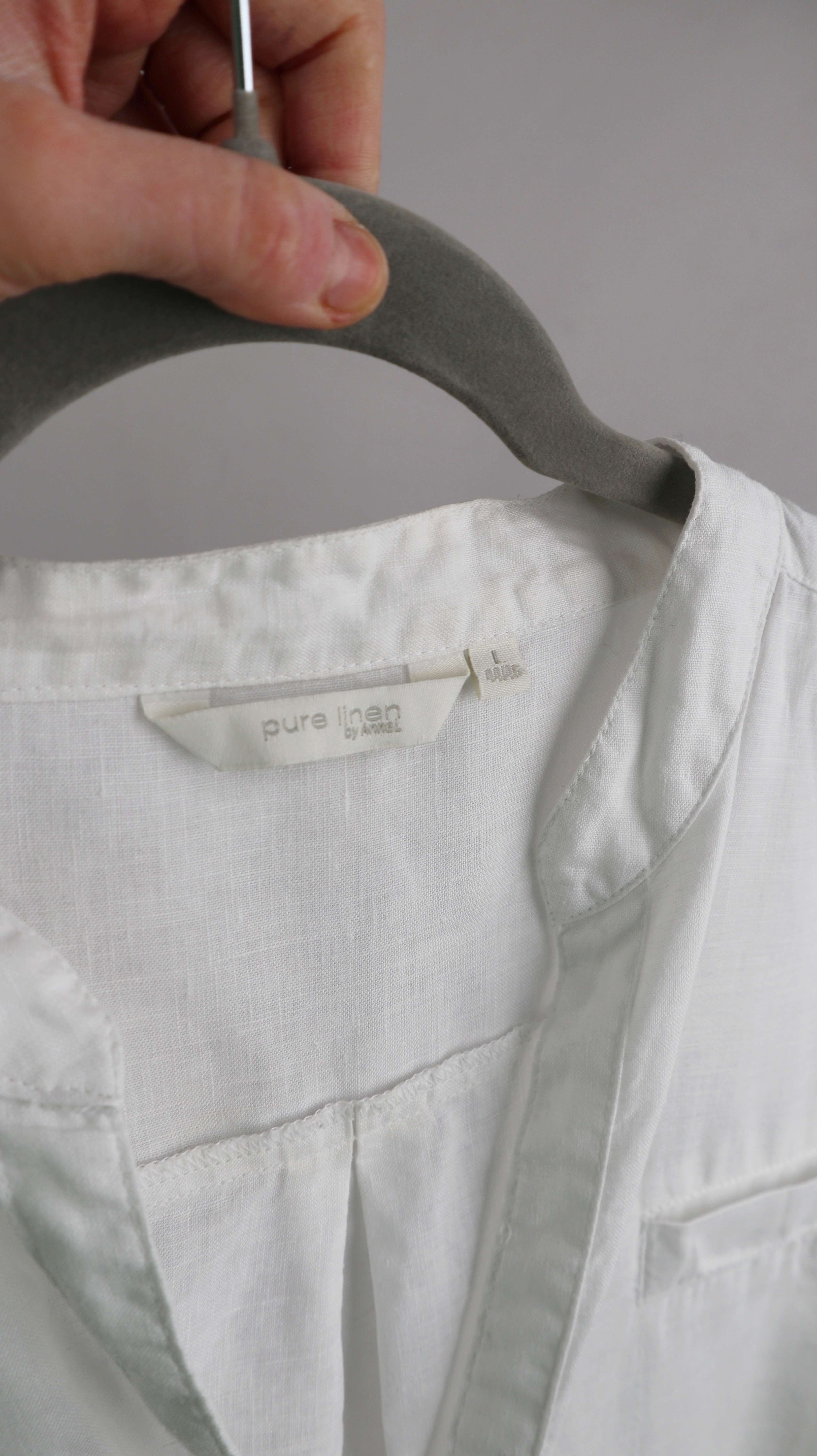 pure linen Anne L. Bluse Hemd weiß Leinenbluse L geknöpft
