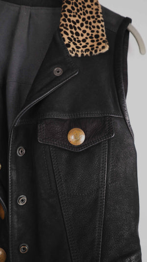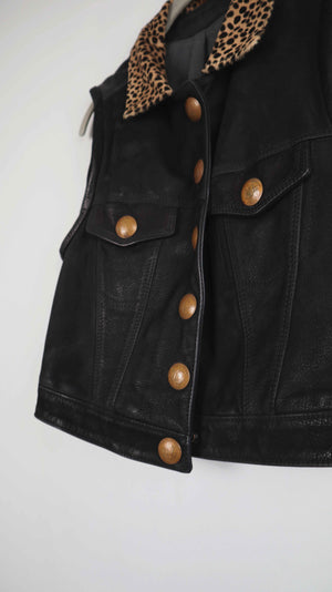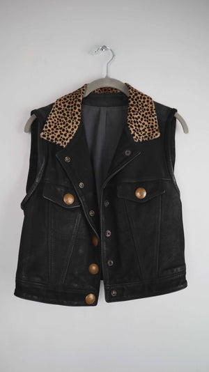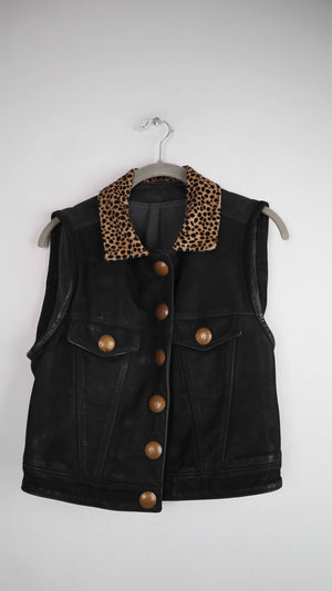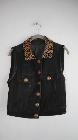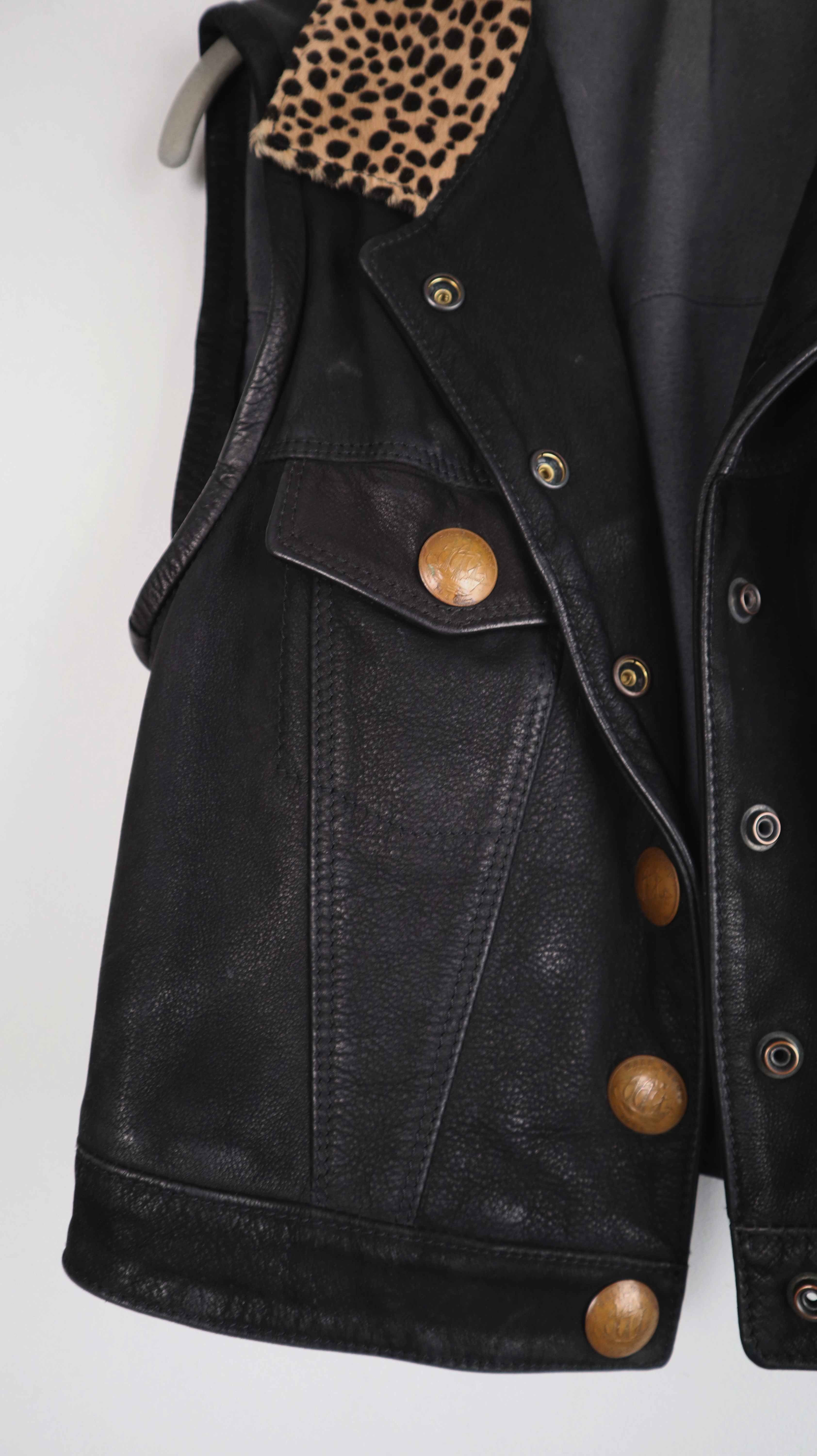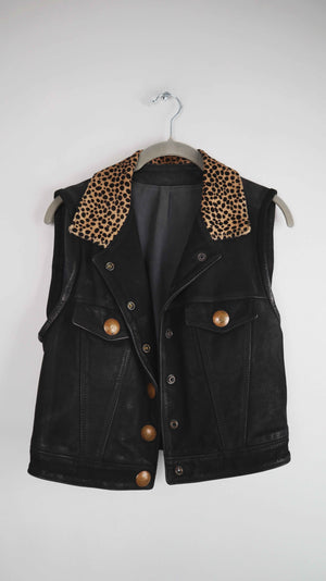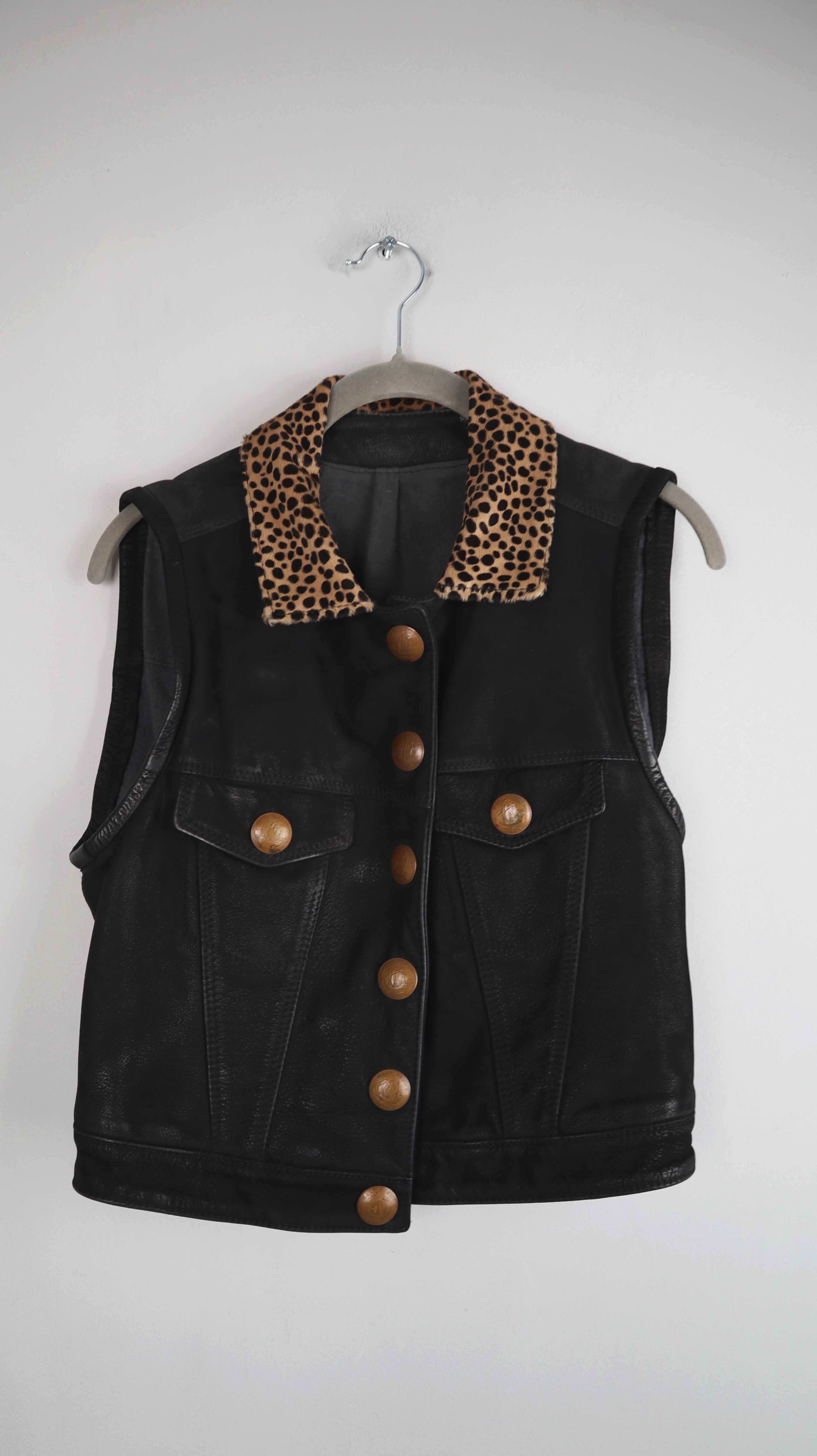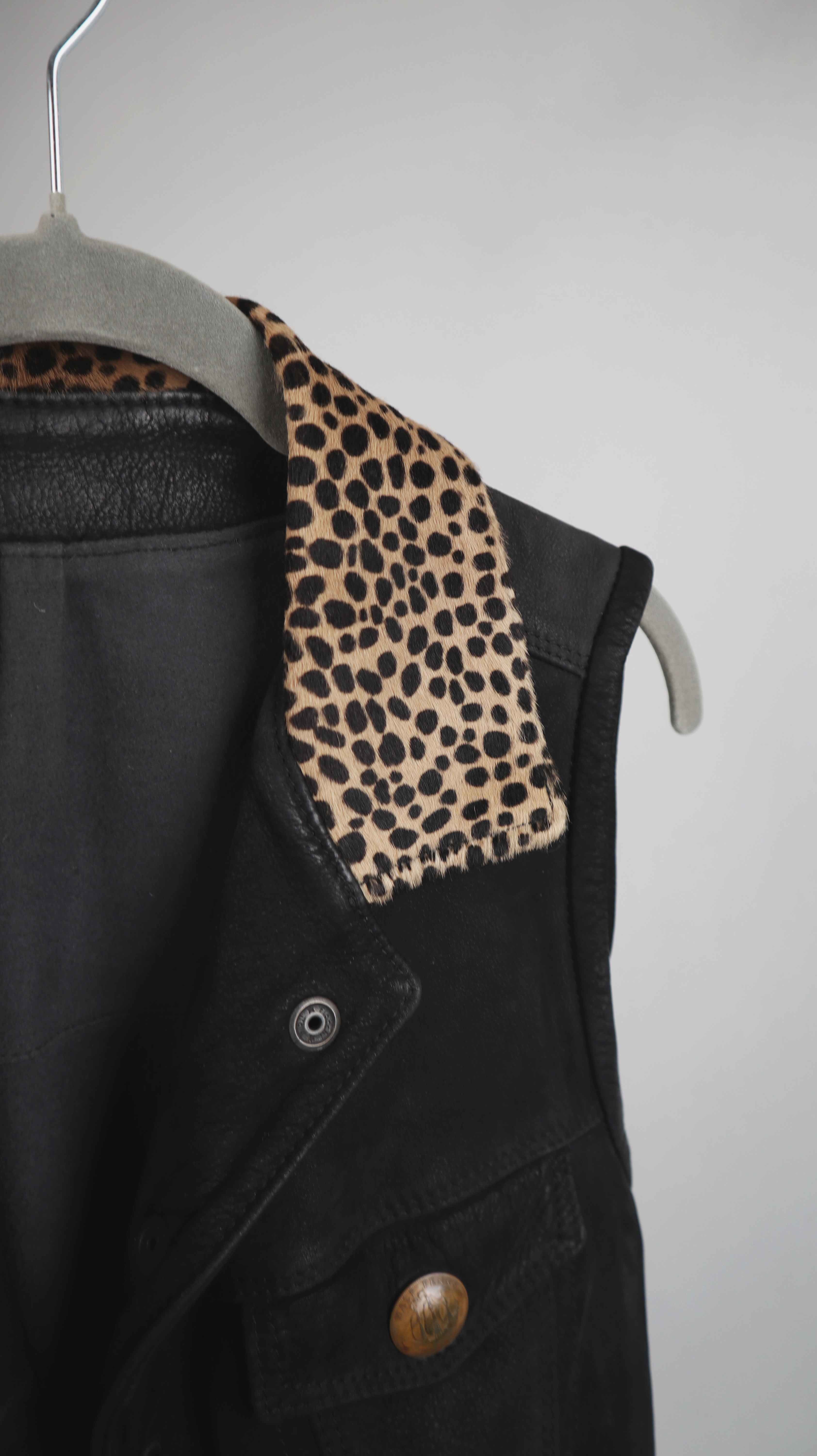 Pyrate Style Weste Lederweste schwarz 36 S Leo Leopardenmuster