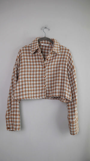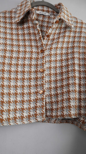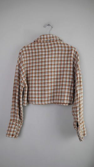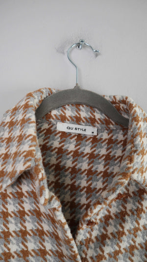 Qu Style Jacke 38 M Hahnentritt braun weiß Wolljacke Blazer