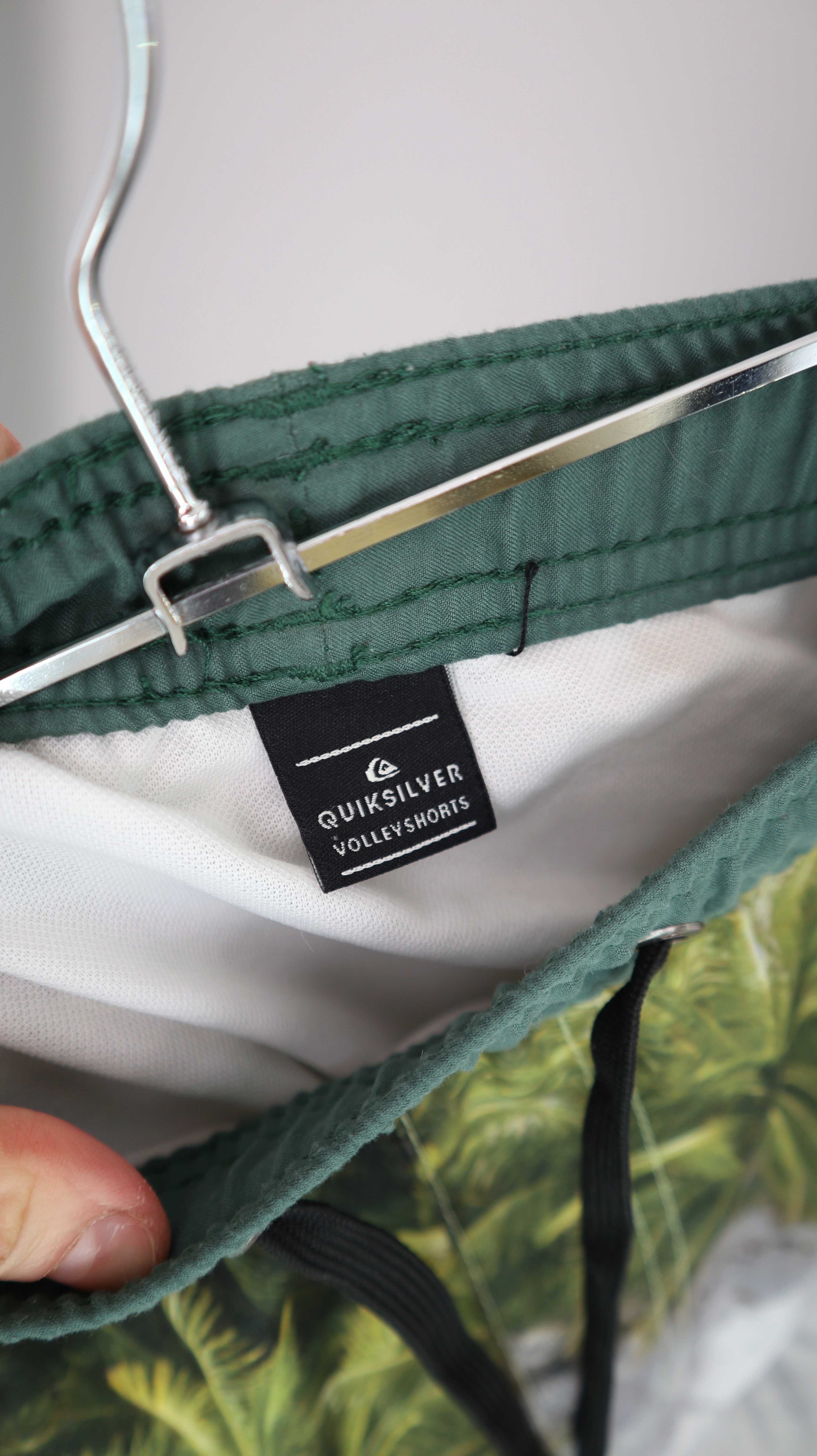 Quicksilver Shorts Kurze Hose L grün Palmen Badehose Schwimmhose