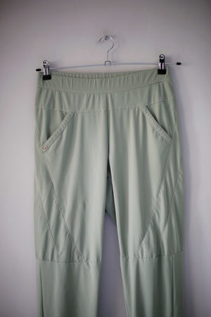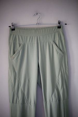 Grüne Hose von Raffaello Rossi. Sie passt einer 38 M wunderbar und hat oben Gummizug. 37 cm Bundweite, 25 cm Schritthöhe und 69 cm Innenbeinlänge. Plus Versand