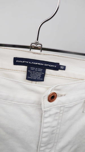 Weiße Hose in Größe 30 von Ralph Lauren. 44 cm Bundweite, 24 cm Schritthöhe und 68 cm Innenbeinlänge. Plus Versand