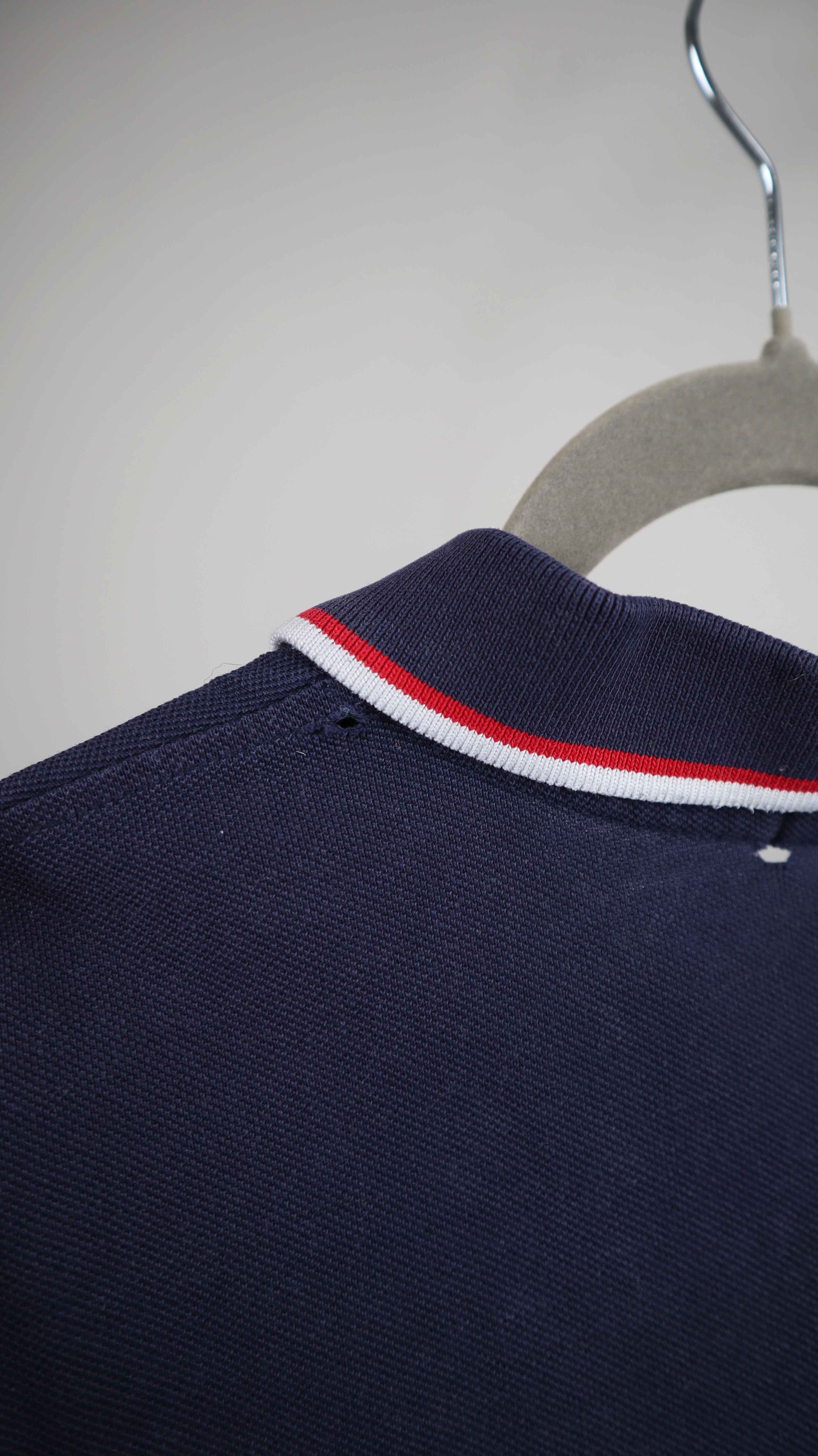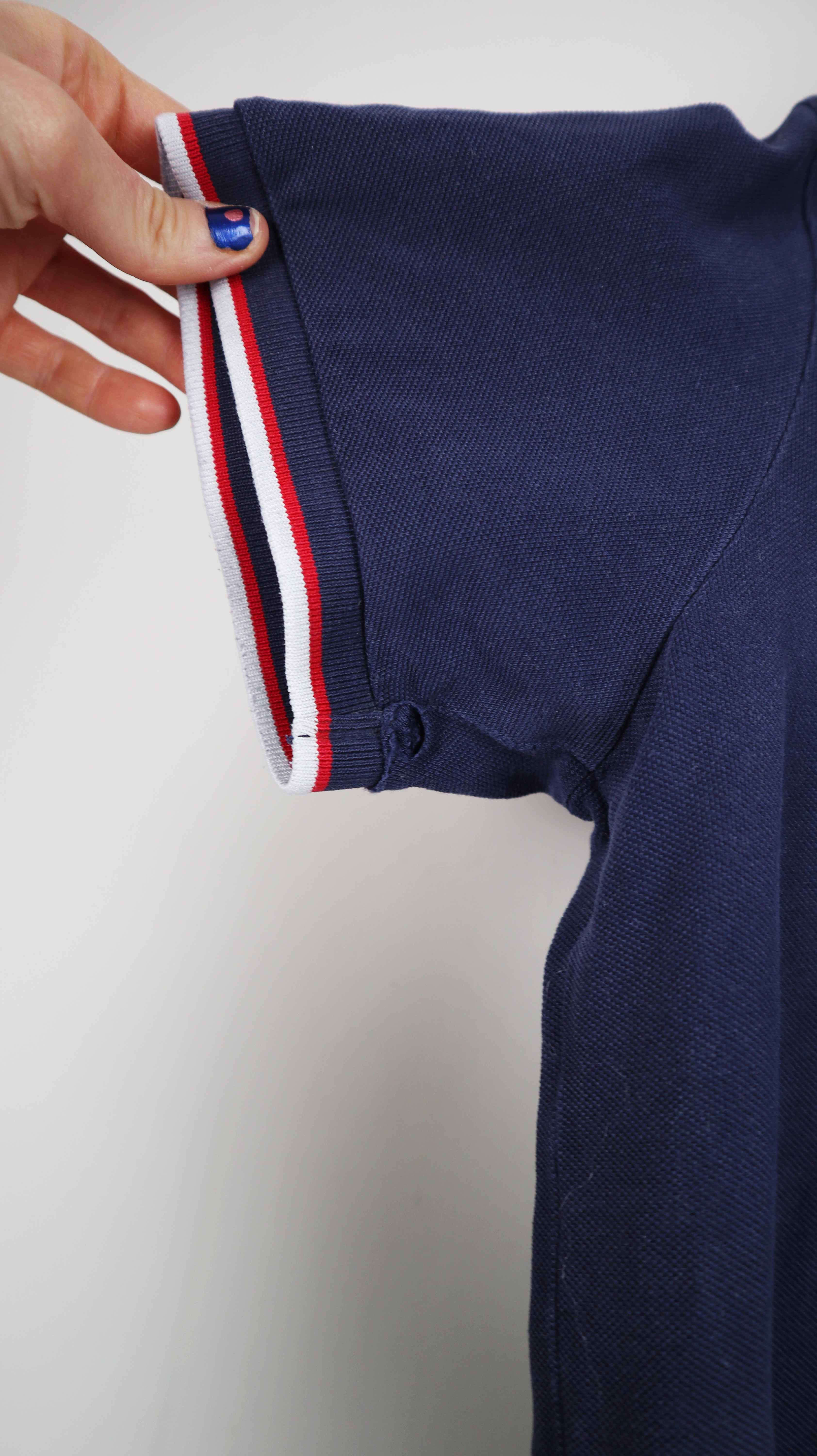 Dunkelblaues Poloshirt von Polo in L. Es hat diverse Benutzungsspuren und kleine Löcher. 51 cm Achselweite und 56 cm Länge. Plus Versand