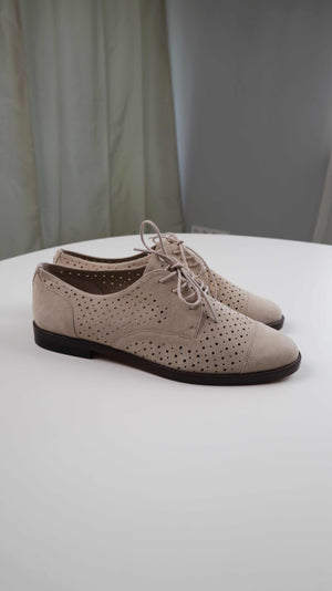 Neue Wildlederhalbschuhe mit Lochung von Ralph Lauren. Sie passen einer 42 und sind mit 10 B gekennzeichnet. Plus Versand