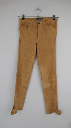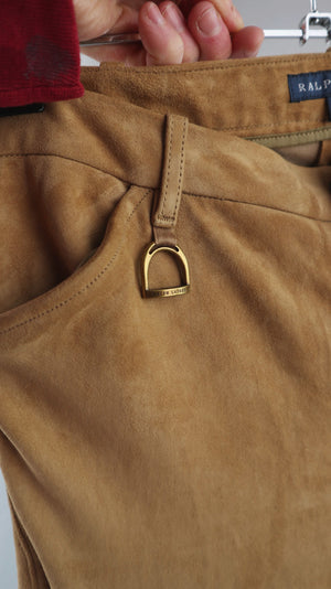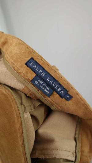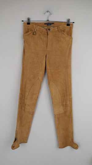 Ralph Lauren Wildlederhose Hose Röhrenhose 6 36 S Lederhose Beige braun