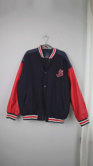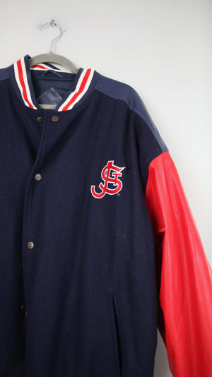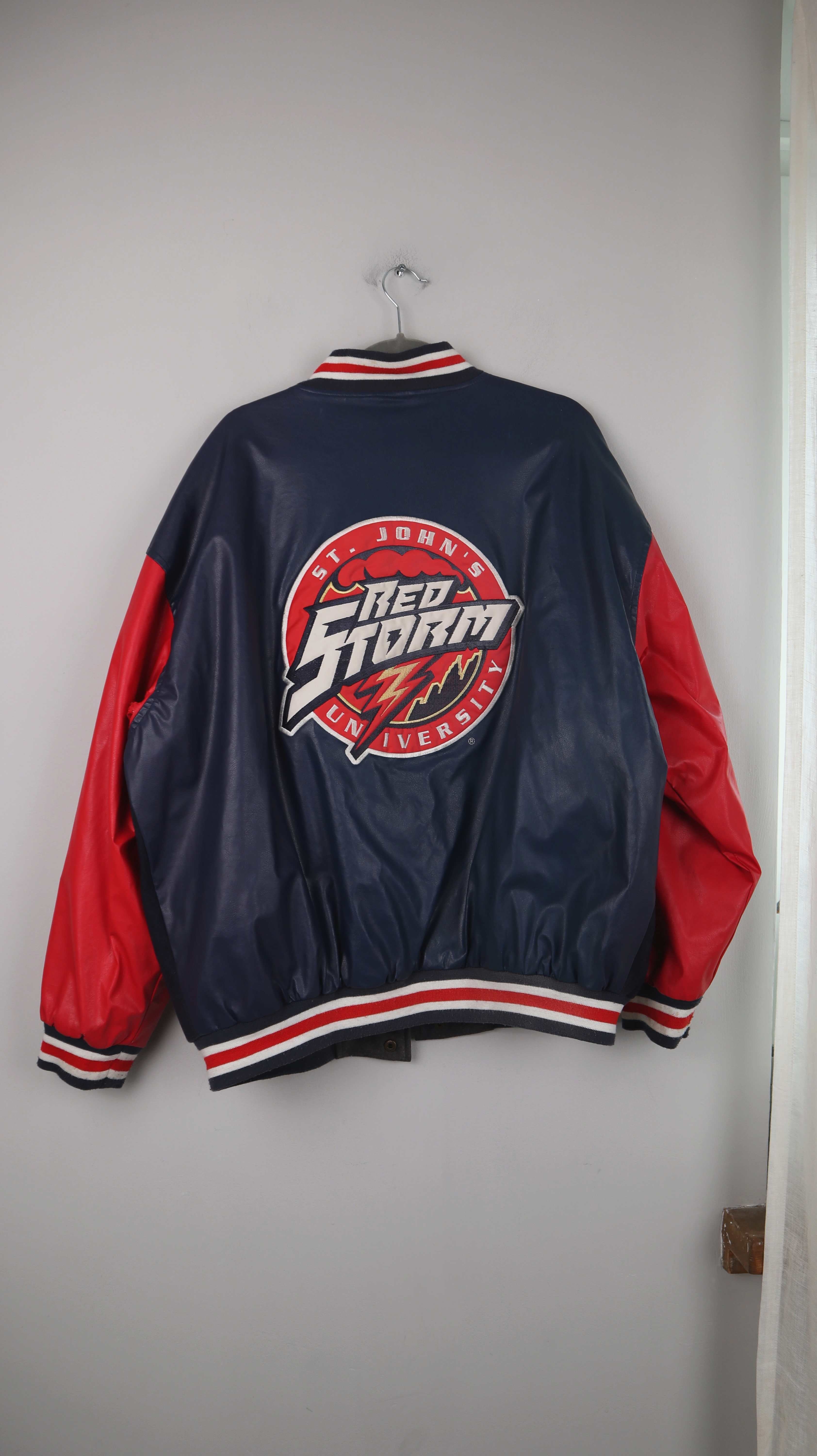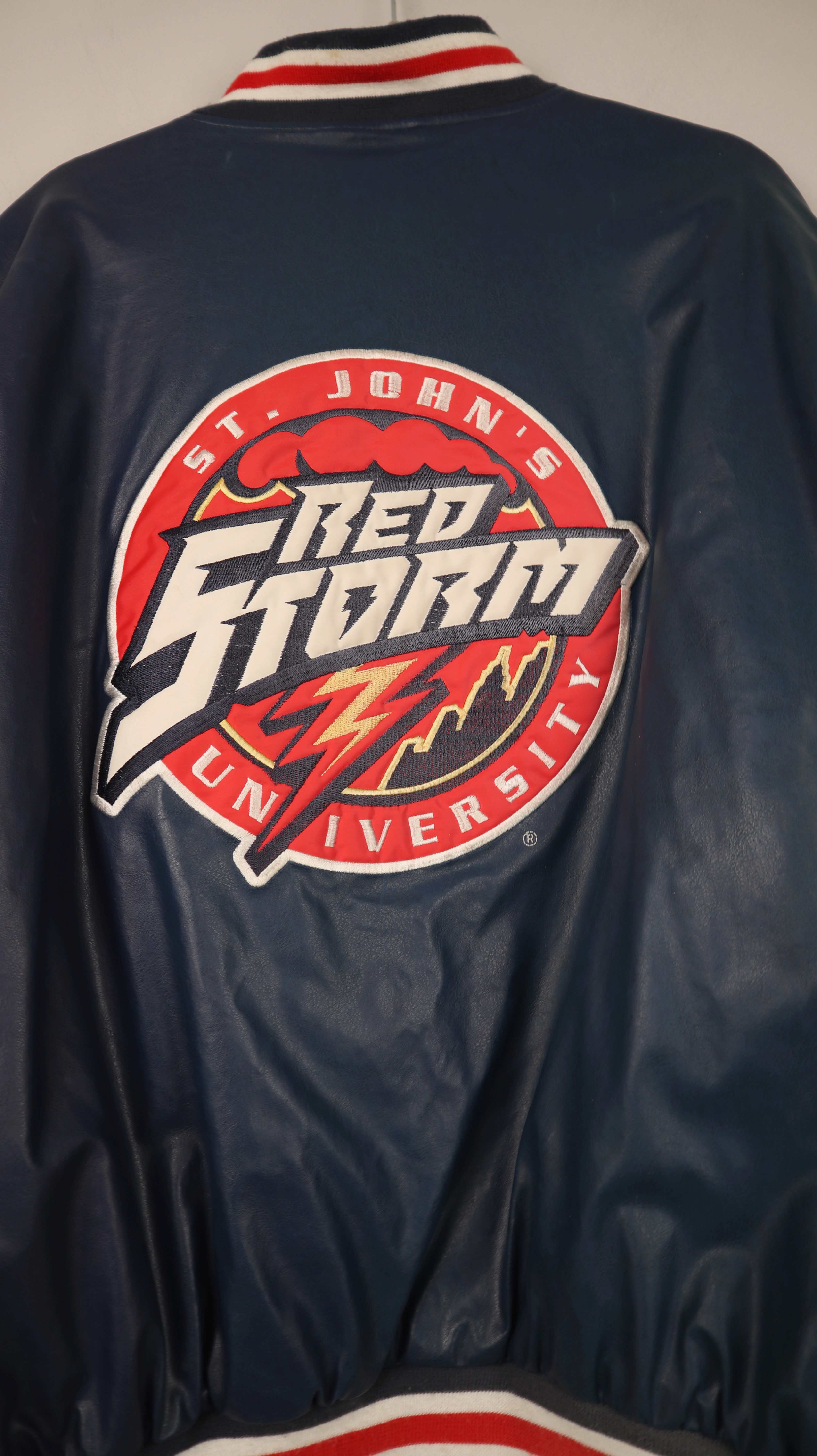 Red Storm St. John's University Lederjacke blau rot XL true Vintage Backprint