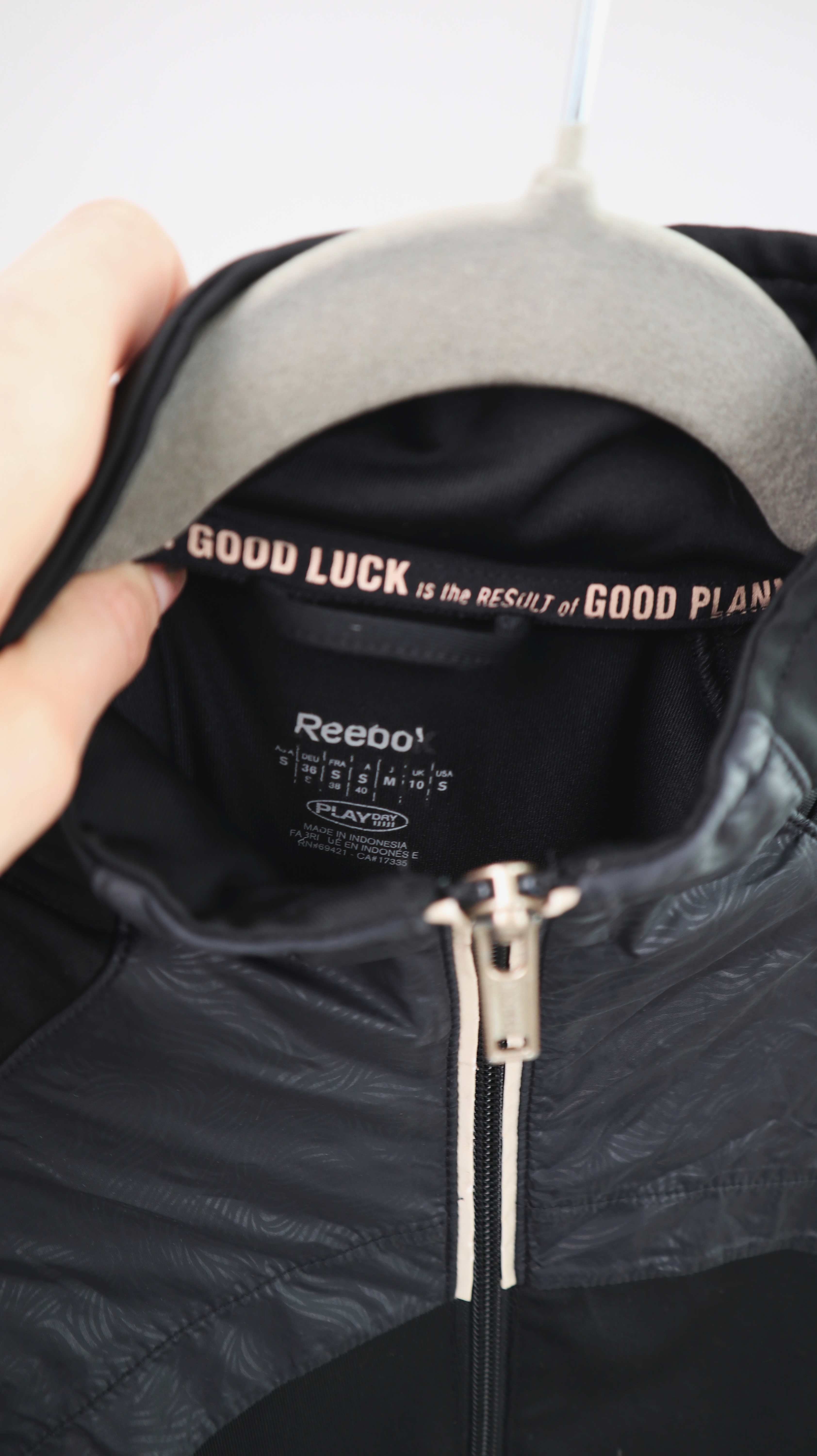 Schwarze Trainingsjacke von Reebok in einer 38 M. 44 cm Achselweite und 53 cm Länge. Plus Versand