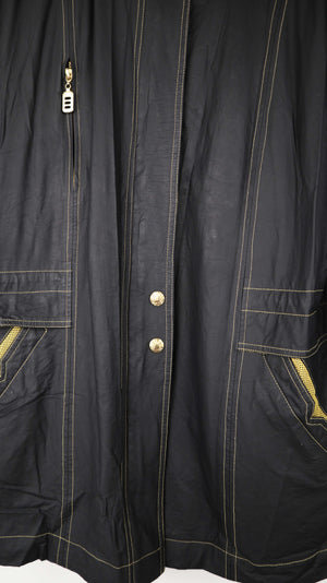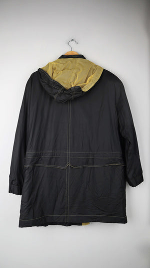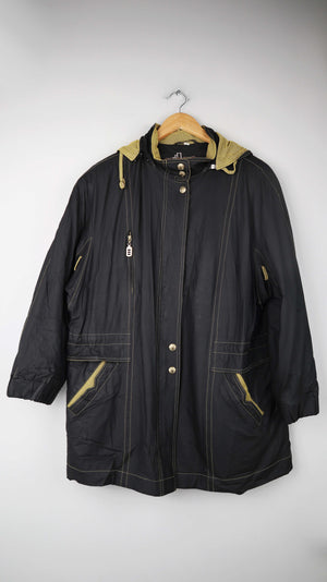 Schwarze Regenjacke, Vintage, in 44. Sie ist von meiner Mutter und gut für den Herbst. 58 cm Achselweite und 85 cm Länge. Plus Versand