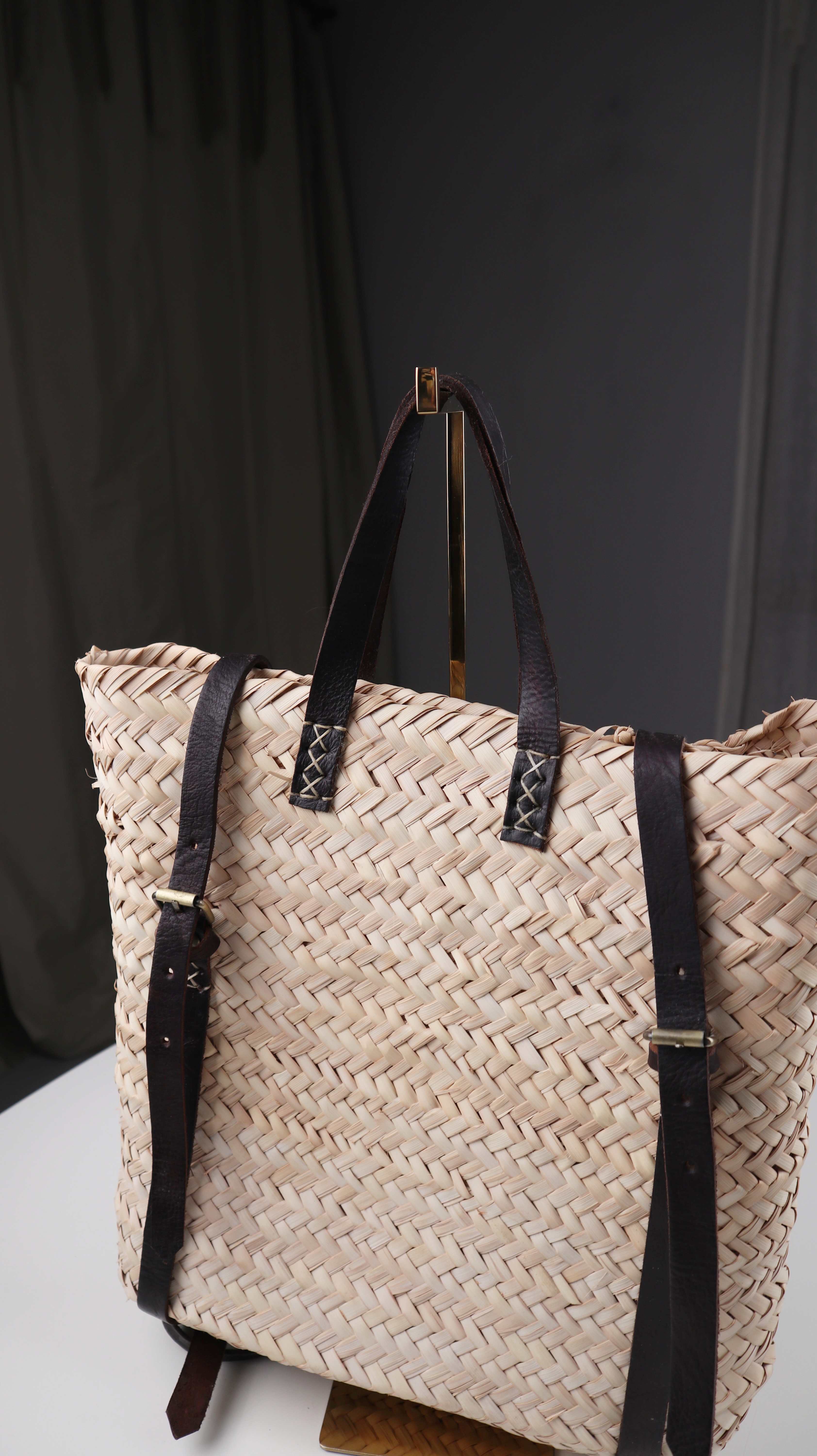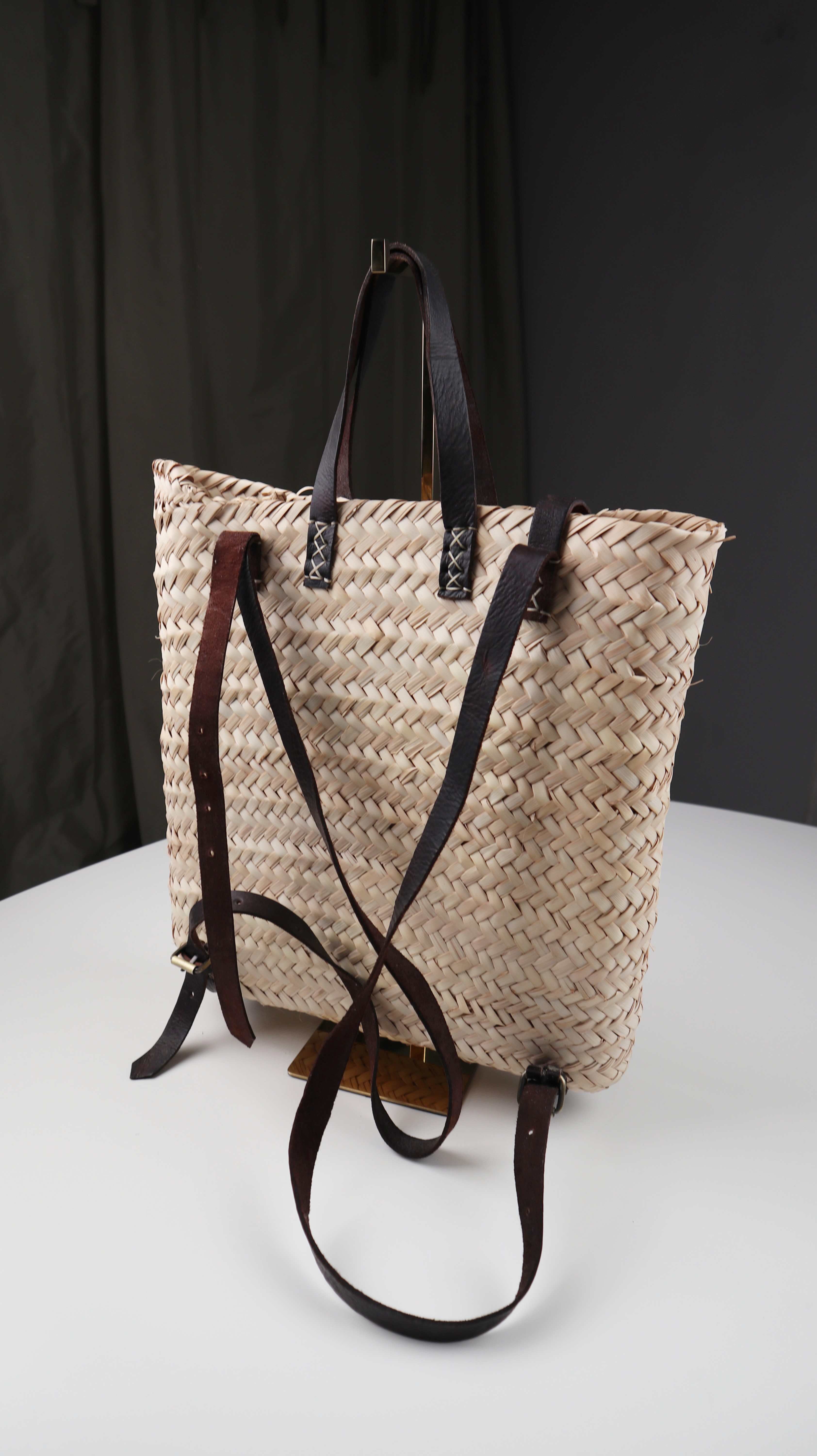 Rucksack Korbrucksack gelochten Tasche Shopper Schultertasche Flechttasche