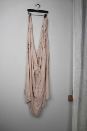 Beiger Schal mit einem leichten Muster. Material sollte Baumwolle sein, es ist keine Marke oder Materialetikett vorhanden. 200 mal 110 cm. Plus Versand