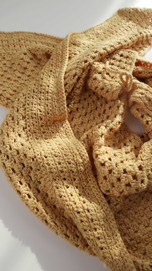 Gestricktes Tuch, welches man auch sehr gut über den Schultern tragen kann und dann vorne bindet. Plus Versand
