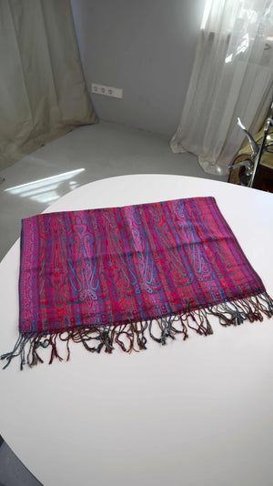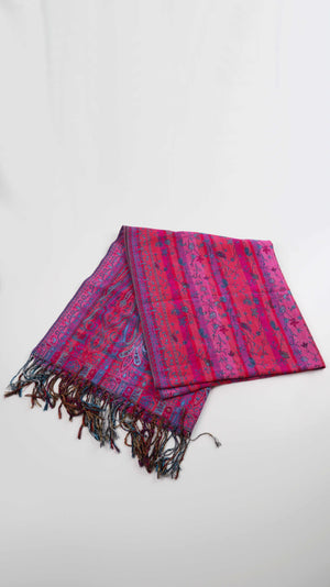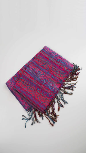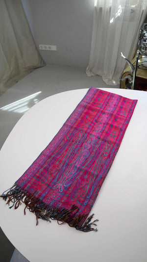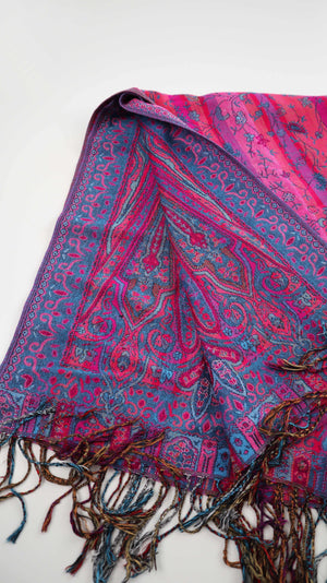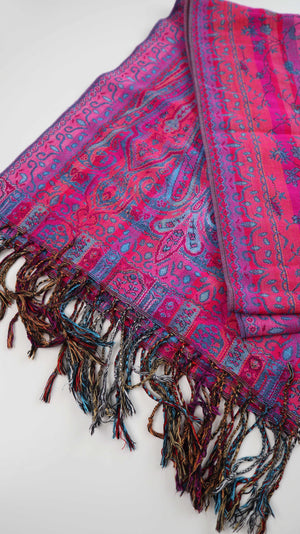 Schal Tuch Pink Rosa Blau Fransentuch Paisley Muster