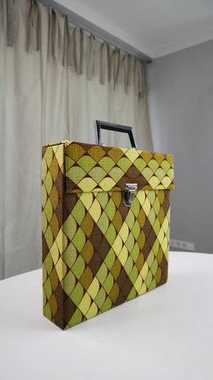 Schallplattenkoffer 50er true Vintage Plattenkoffer Retro grün gelb
