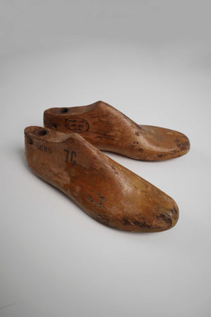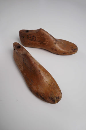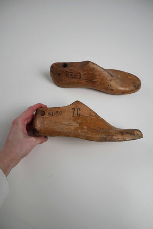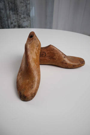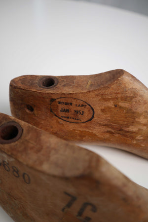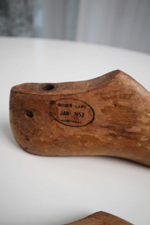 Antike Holzformen für die Fertigung von Schuhen. Sie sind aus Holz und von 1953 aus Montreal. Sie stammen aus Frankreich. Plus Versand