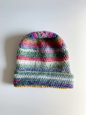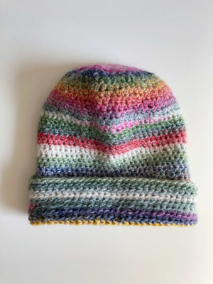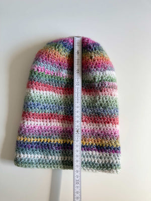 Selbstgestrickte Mütze aus Wolle, bunt. Plus Versand