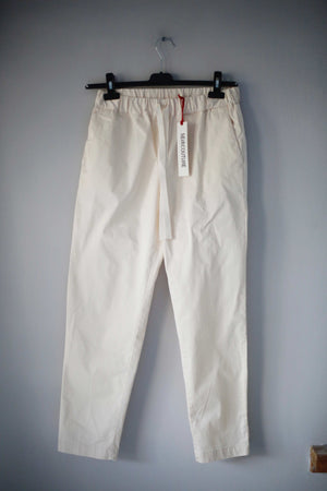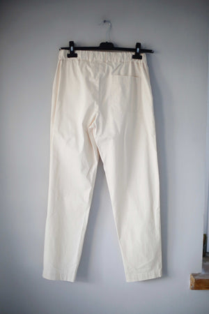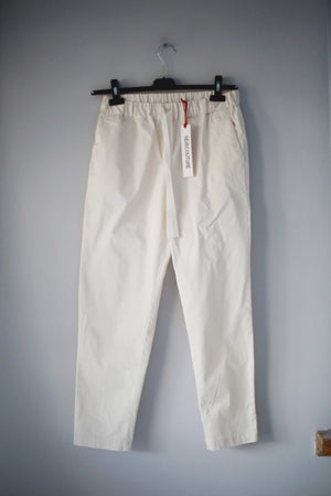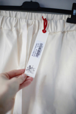 Neue Hose in Creme aus Stoff von Semicouture. Sie hat Taschen und passt einer 38 M. Auf dem Schild steht 42. 34 cm Bundweite, 30 cm Schritthöhe und 68 cm Innenbeinlänge. Oben Gummizug. Plus Versand