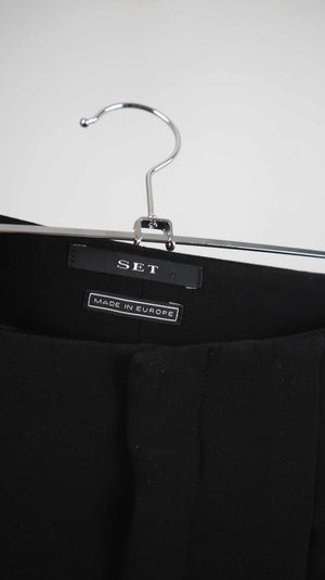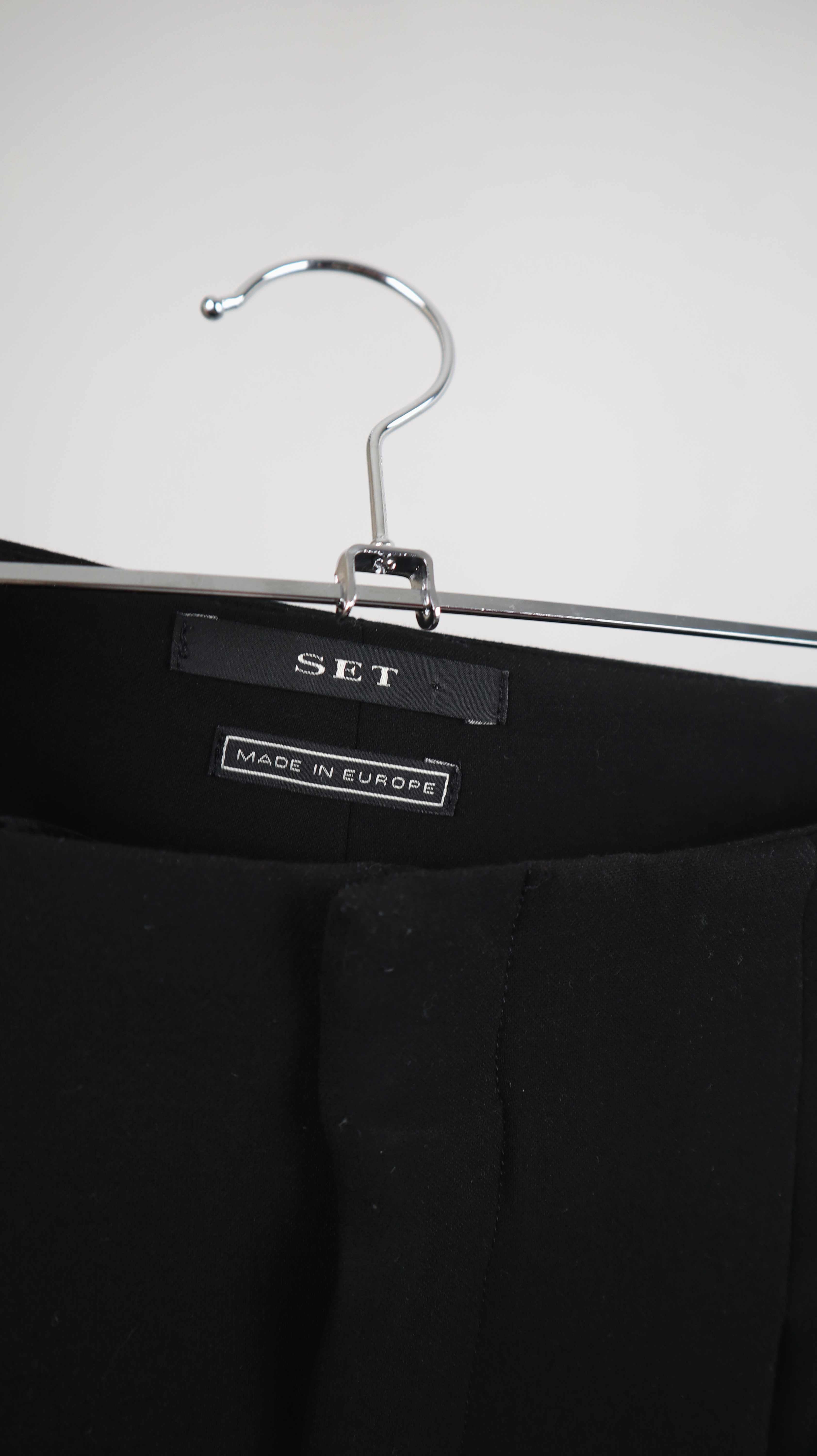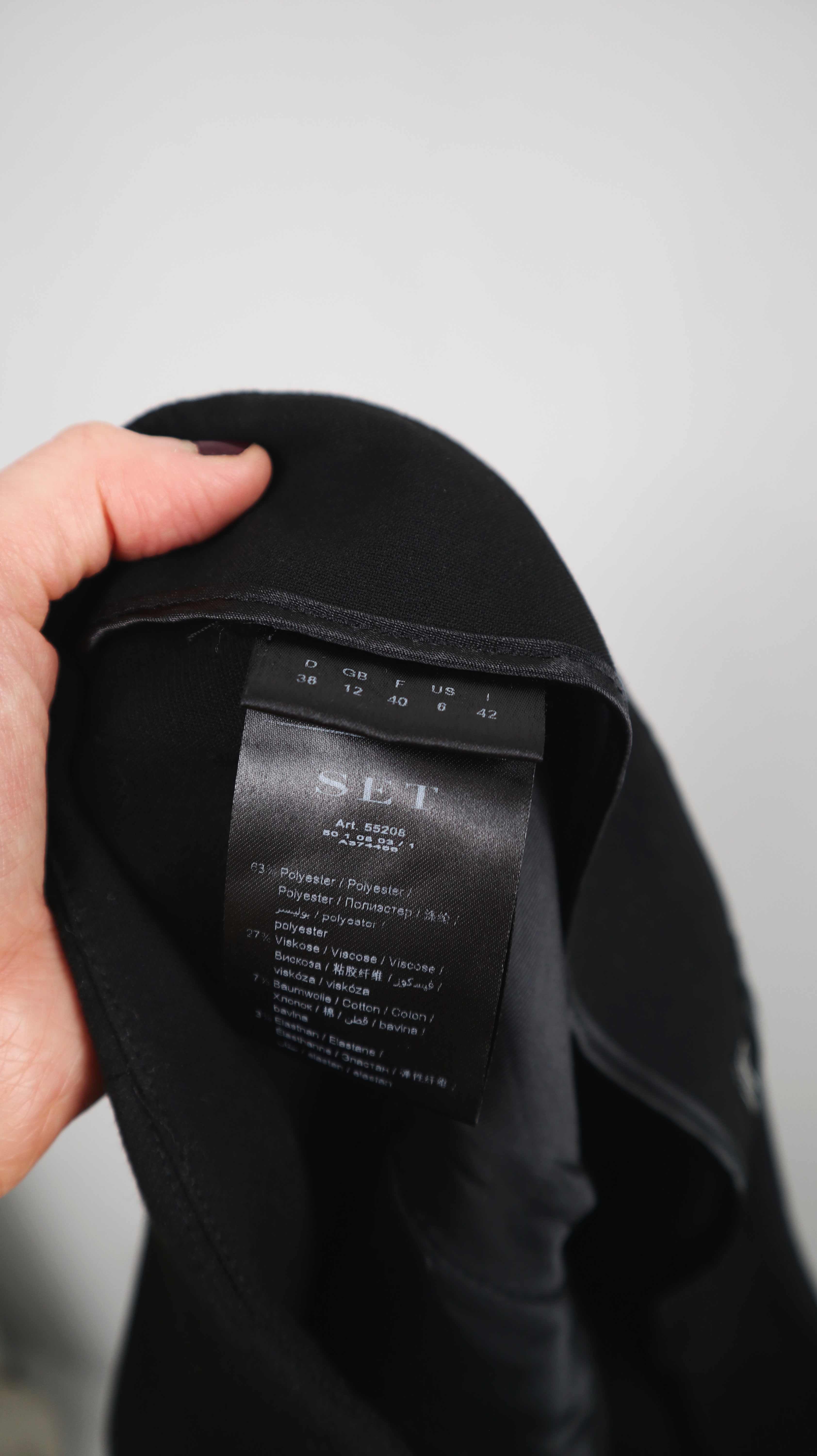 Schwarze Stoffhose mit Taschen von Set in 38 M. 40 cm Bundweite, 28 cm Schritthöhe und 64 cm Innenbeinlänge. Plus Versand