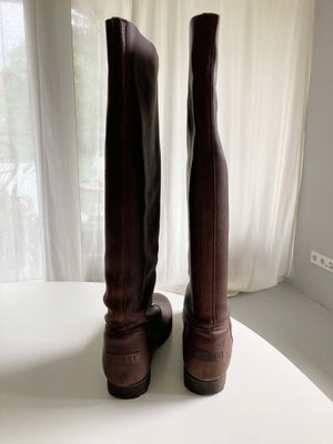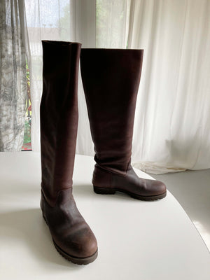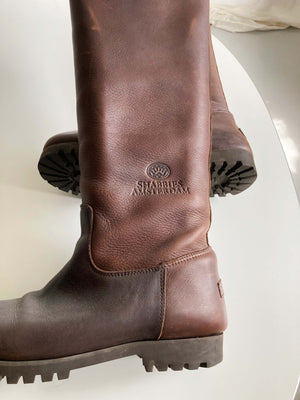 Shabbies Amsterdam Stiefel Lederstiefel 41 42 braun hoch lang dunkelbraun