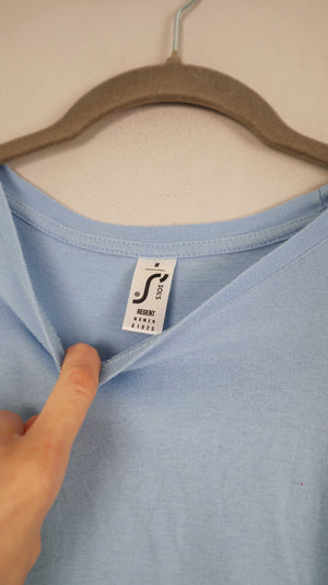 Hellblaues Shirt in einer 38 M. 43 cm Achselweite und 52 cm Länge. Plus Versand