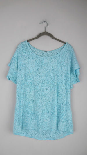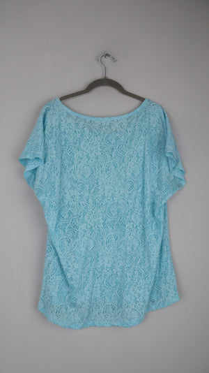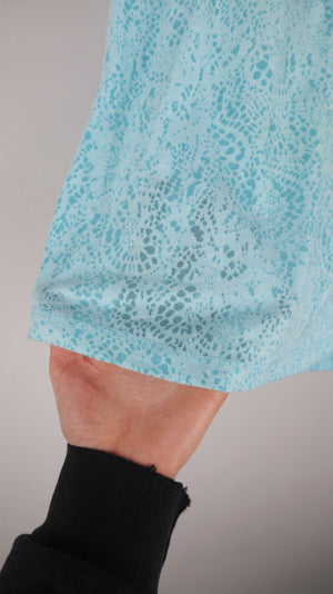 Shirt in Türkis ohne Marke. Es passt einer 40 L. 51 cm Achselweite und 63 cm Länge. Plus Versand
