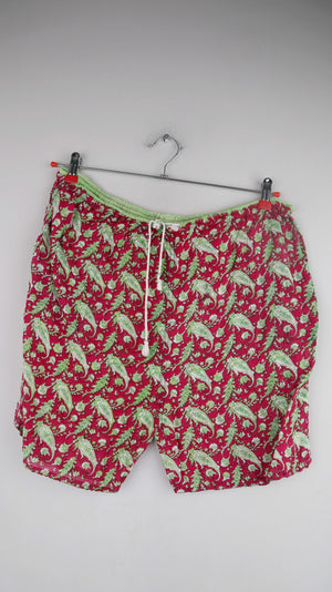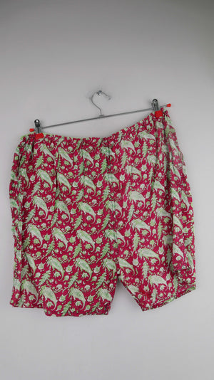 Shorts bunte Hose Indien bedruckt Pink grün Paisley Baumwolle kurze Hose