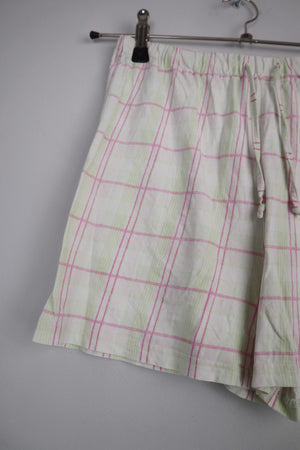 Shorts kurze Hose kariert rosa grün Baumwolle Schlafshorts 36 S 38 M